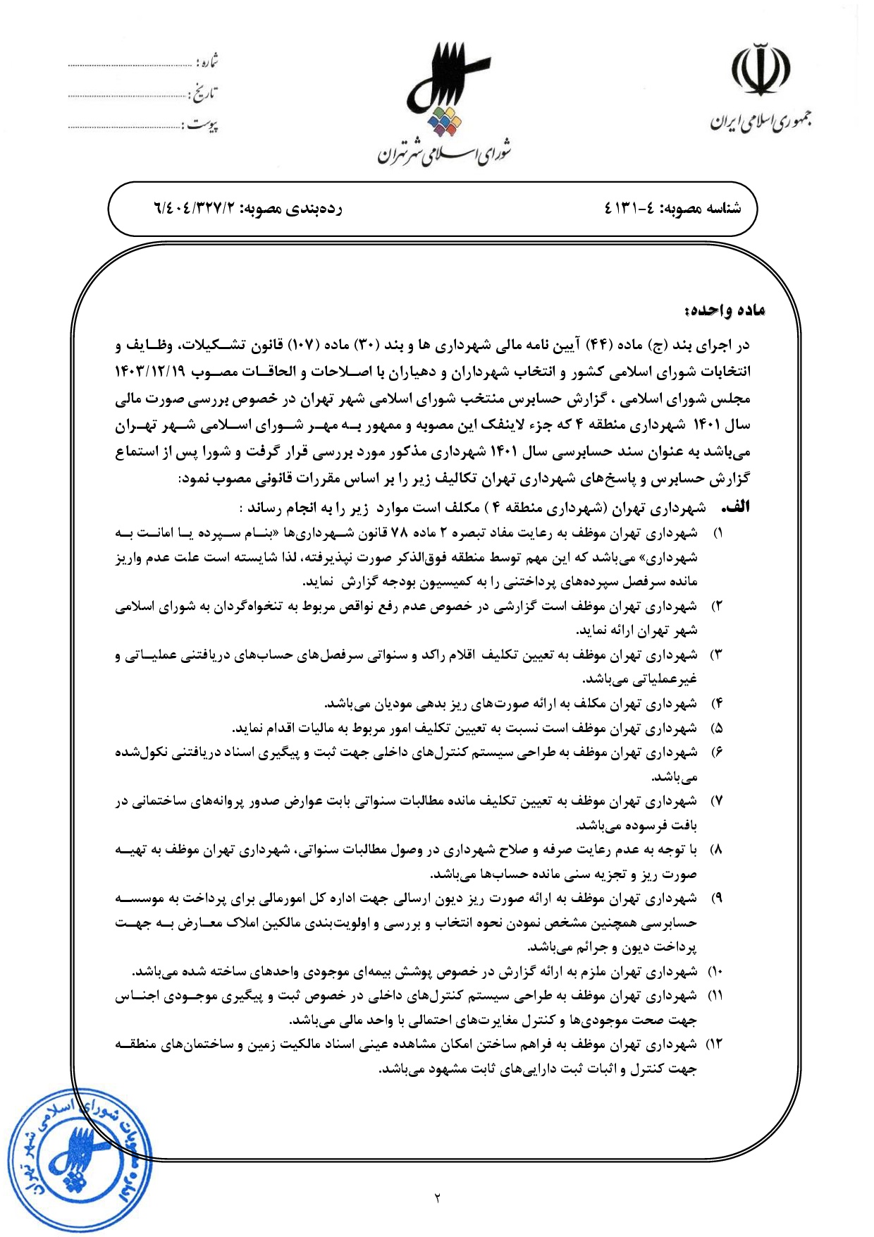 گزارش حسابرسي سال مالي 1401 شهرداري منطقه 4