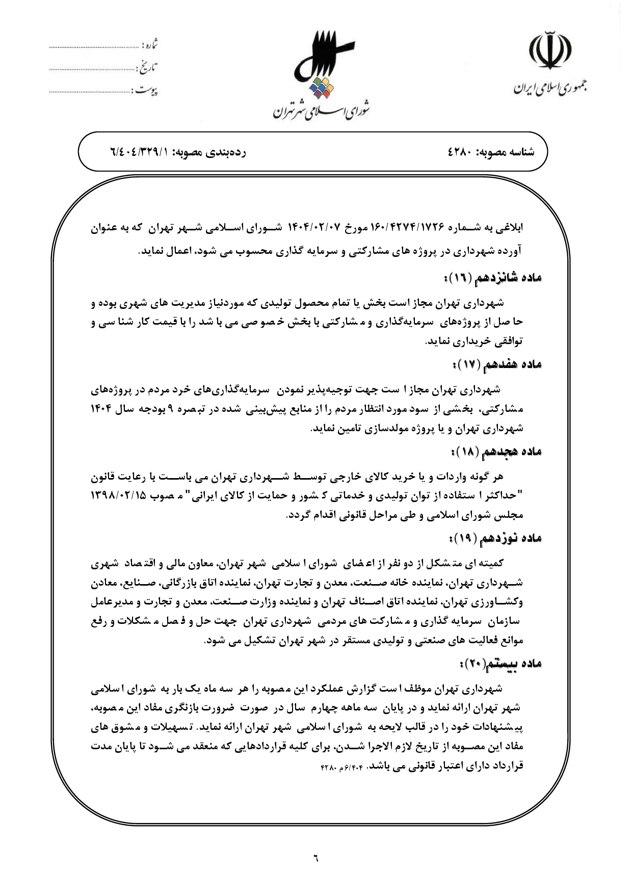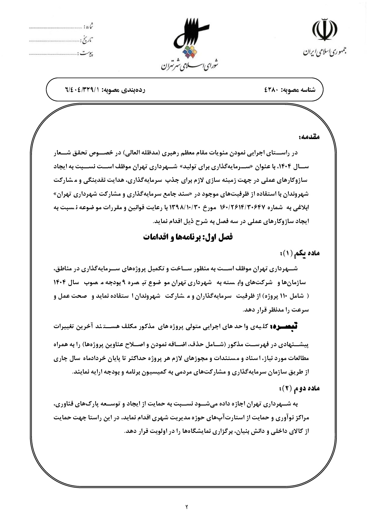 معرفی سامانه جامع مصوبات شورای اسلامی شهر تهران