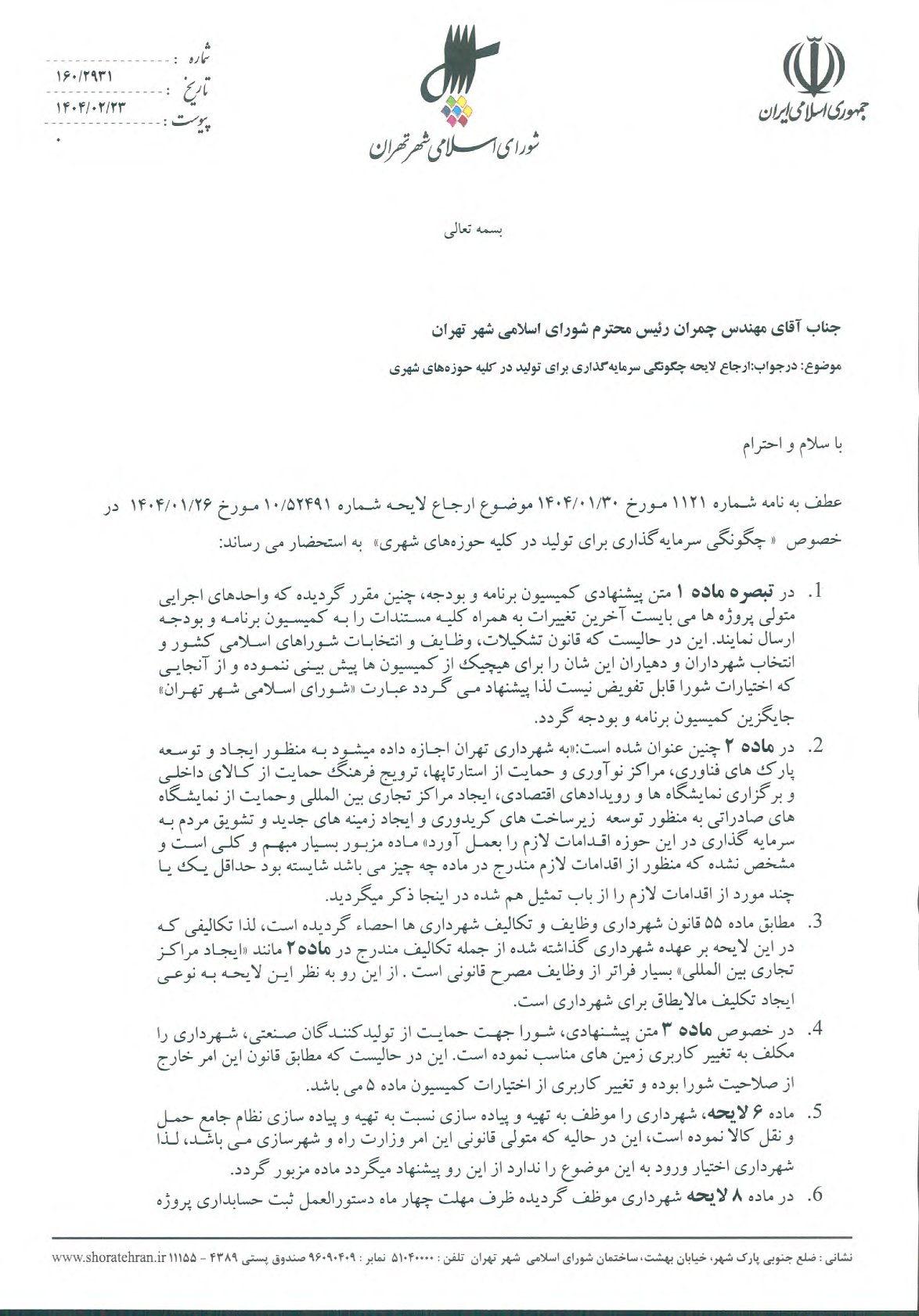 معرفی سامانه جامع مصوبات شورای اسلامی شهر تهران