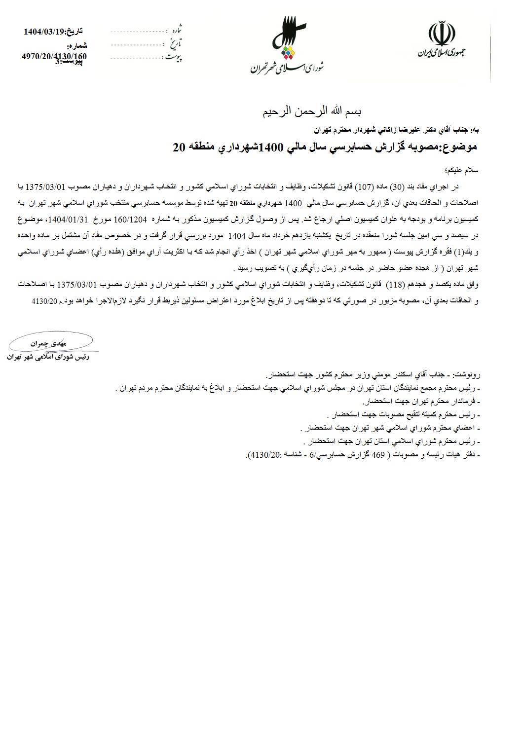 گزارش حسابرسي سال مالي 1400 شهرداري منطقه 20