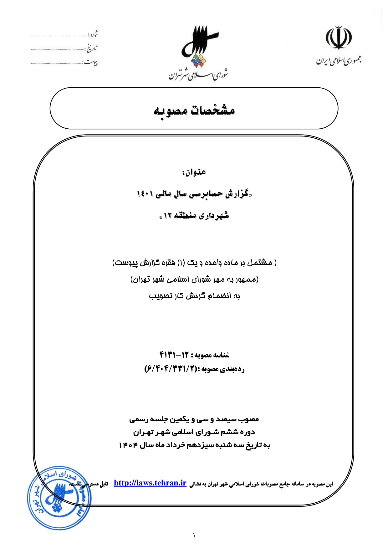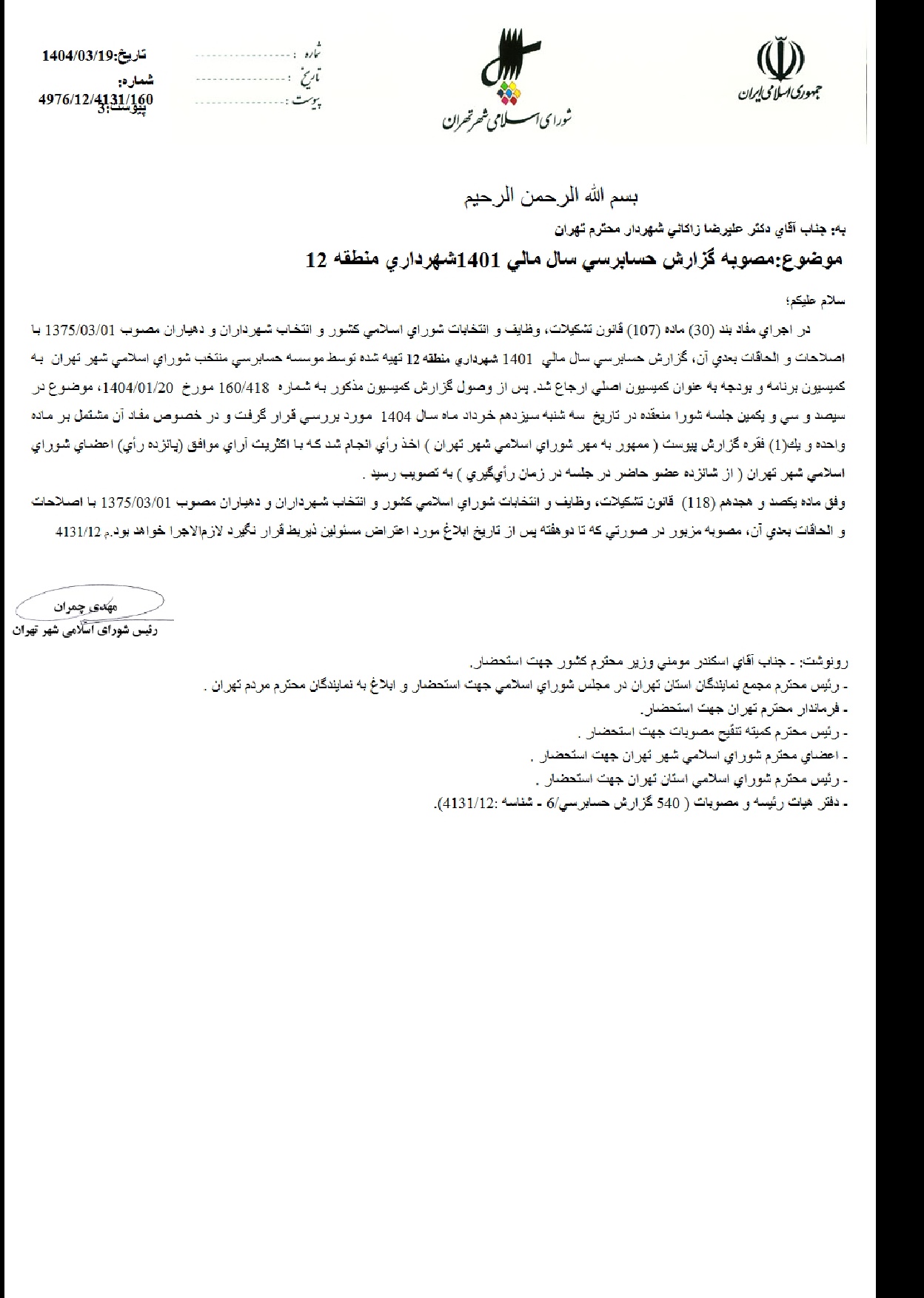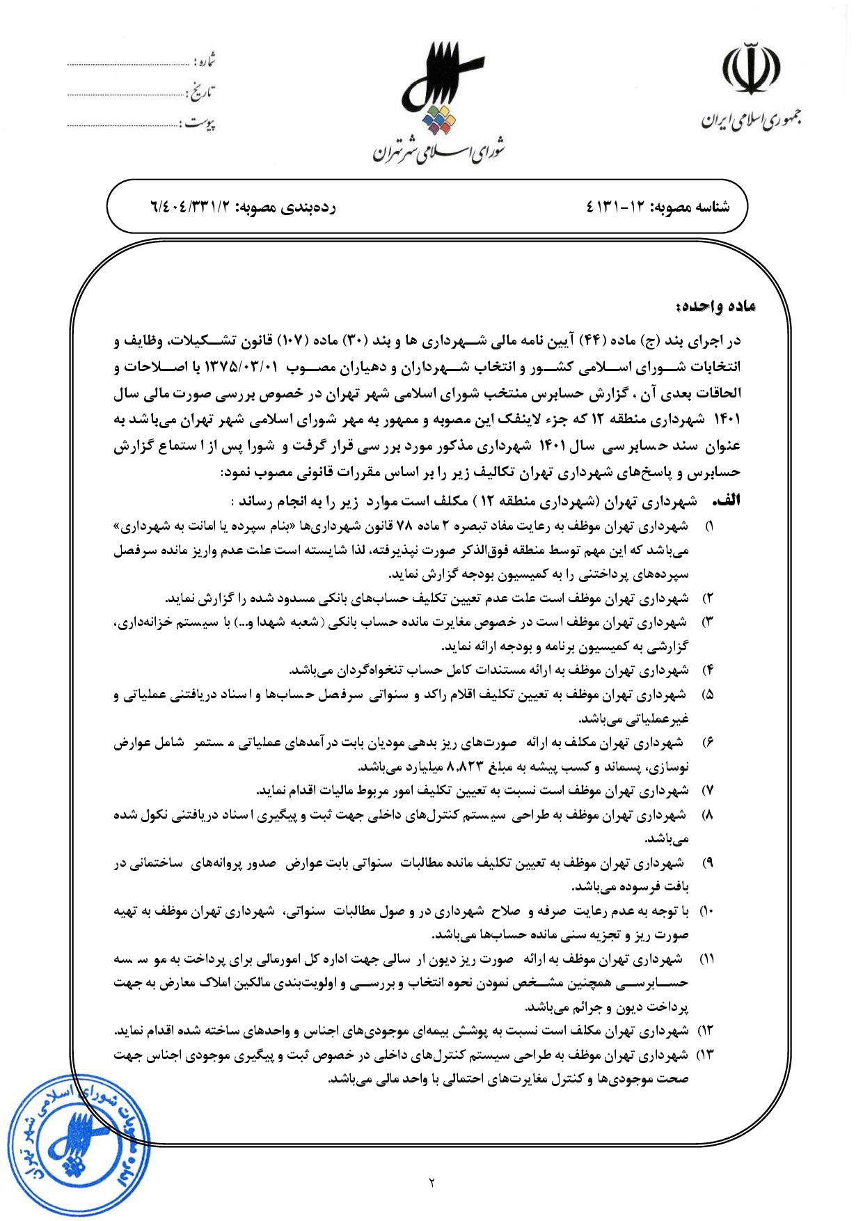 گزارش حسابرسي سال مالي 1401 شهرداري منطقه 12