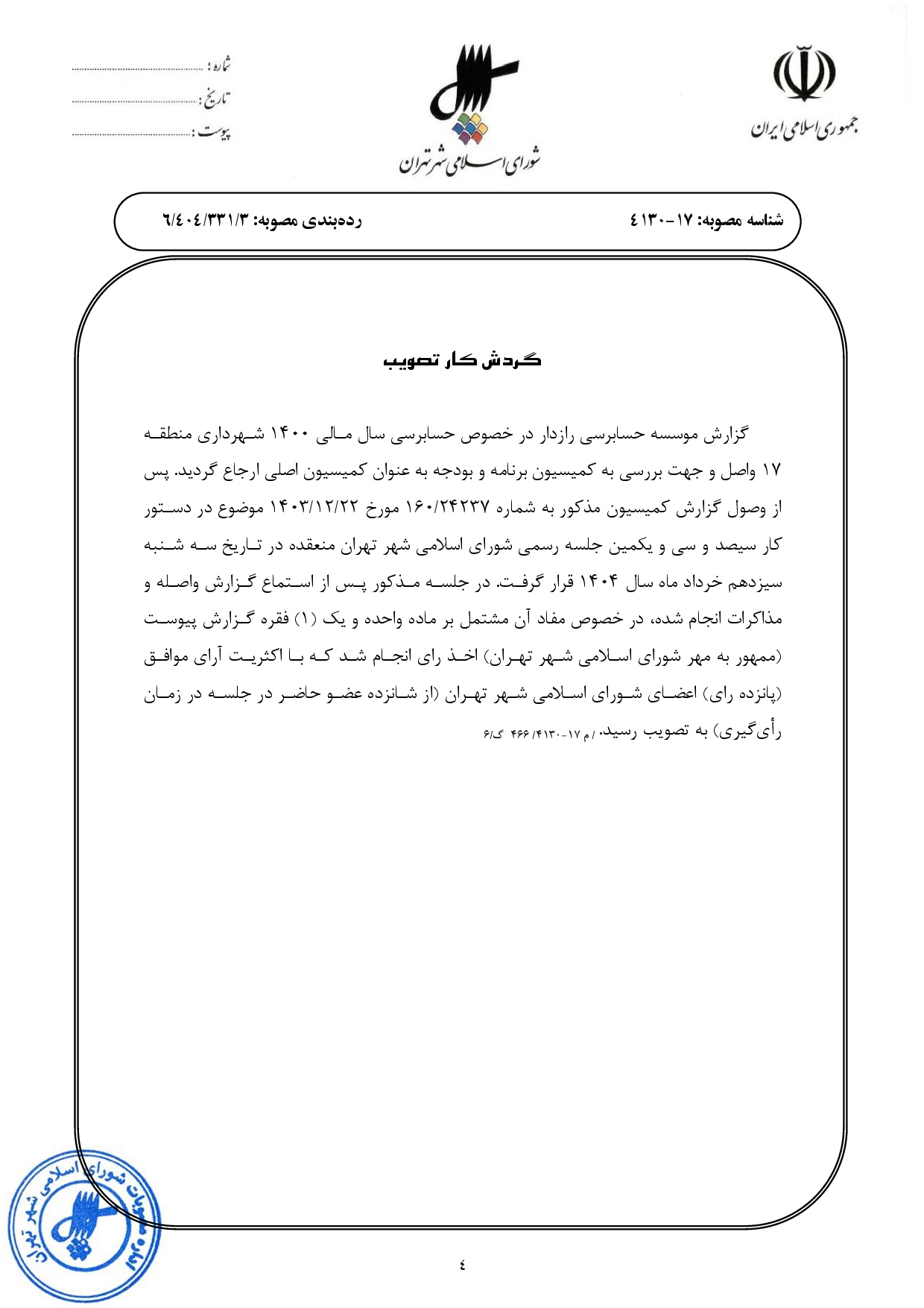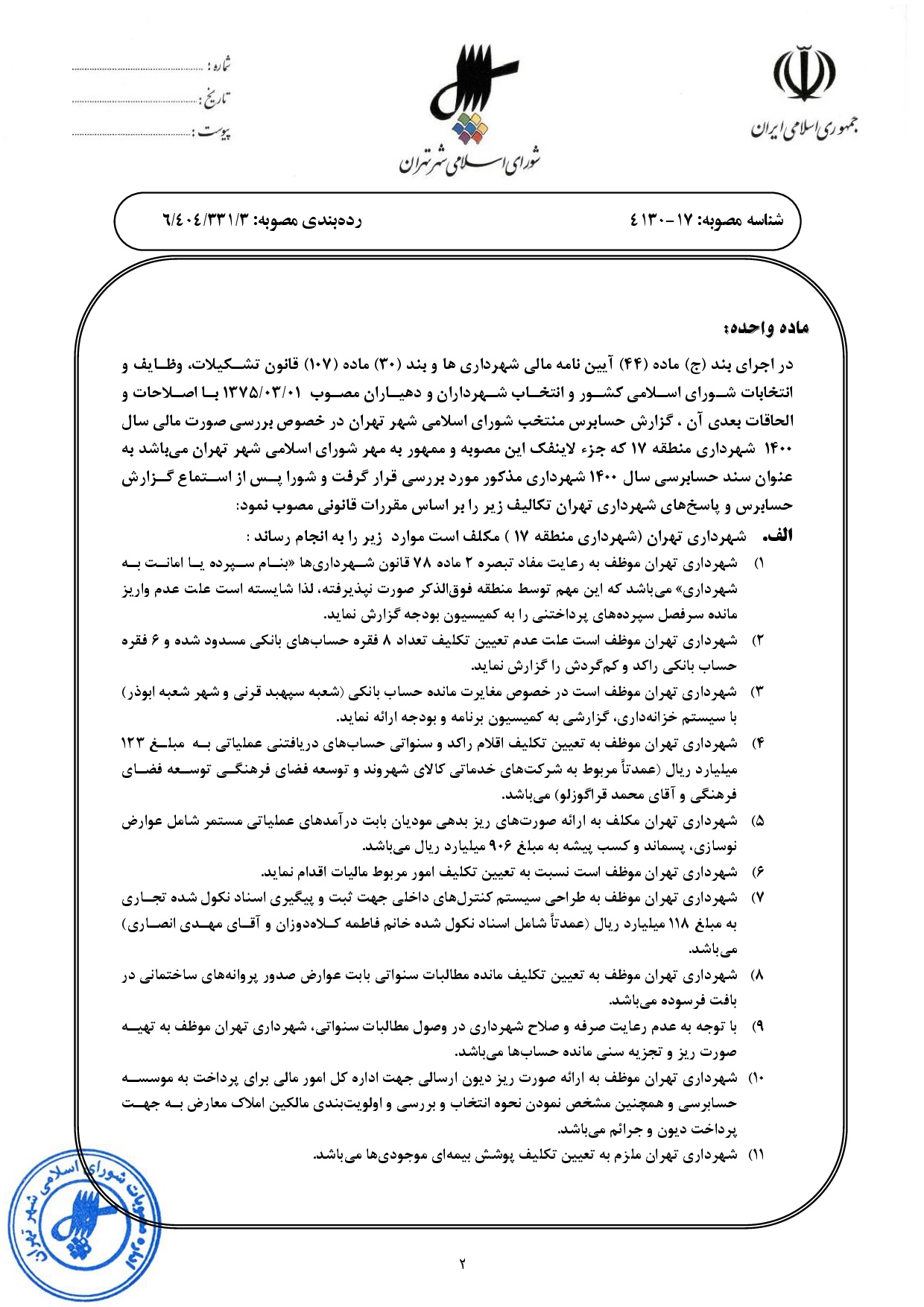 گزارش حسابرسي سال مالي 1400 شهرداري منطقه 17