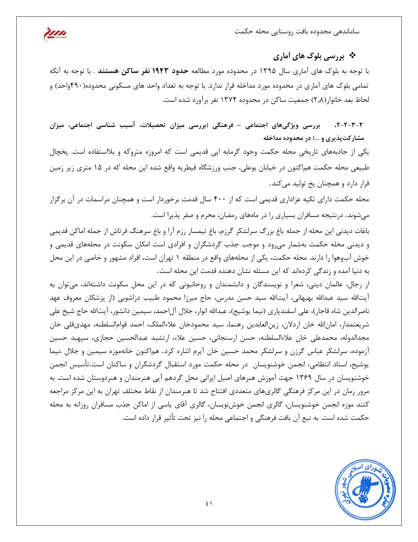 طرح موضعي ساماندهي بافت روستايي محله حكمت
