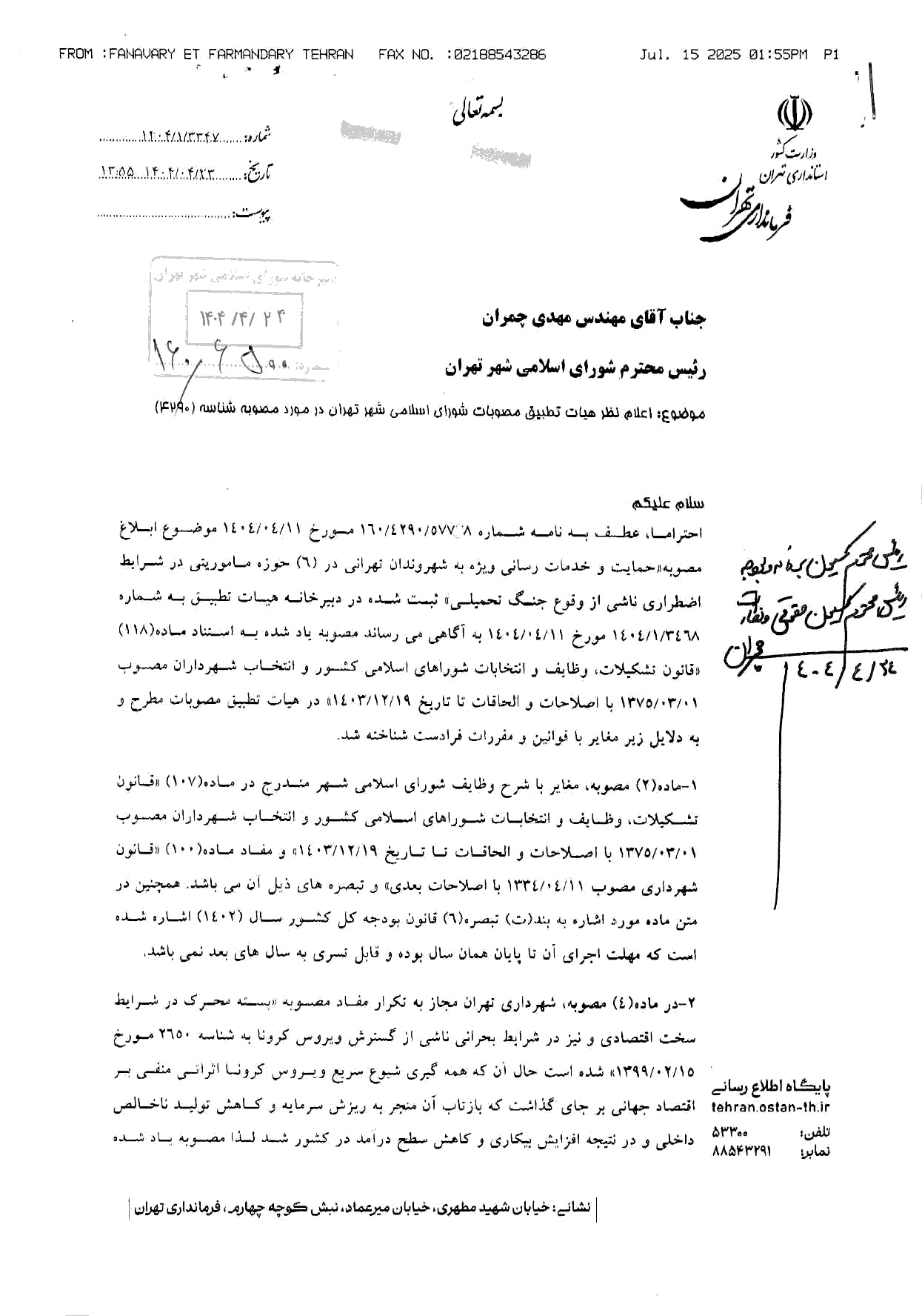 معرفی سامانه جامع مصوبات شورای اسلامی شهر تهران