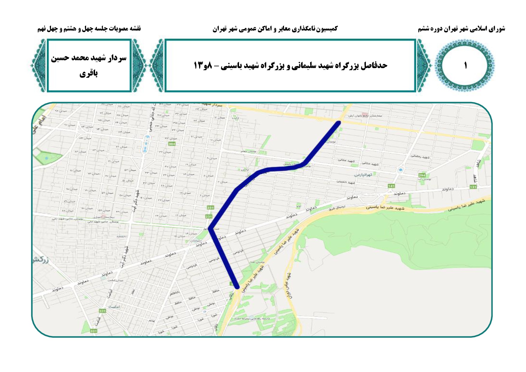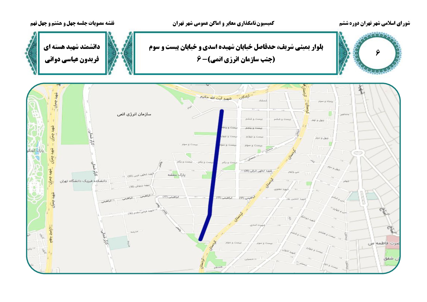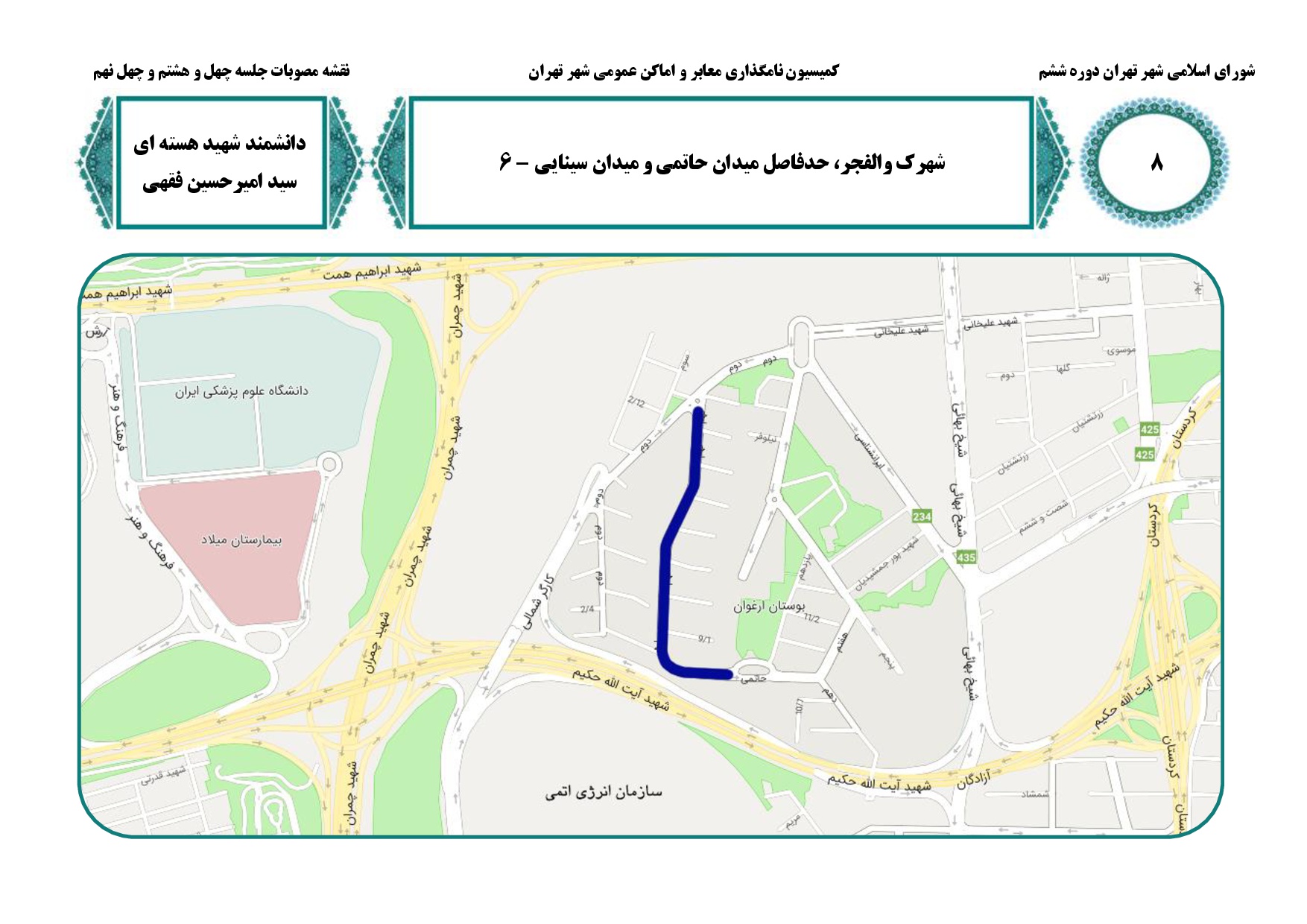 نامگذاري و تغيير نام نه (9) معبر عمومي شهر تهران به نام سرداران و دانشمندان هستهاي شهيد در جنگ تحميلي 12روزه
