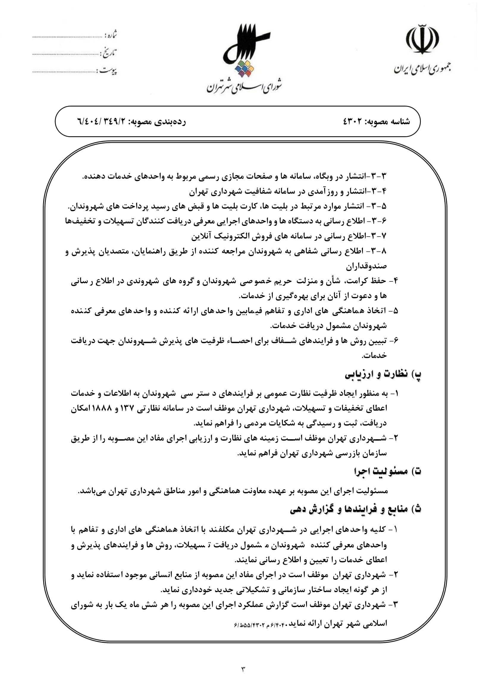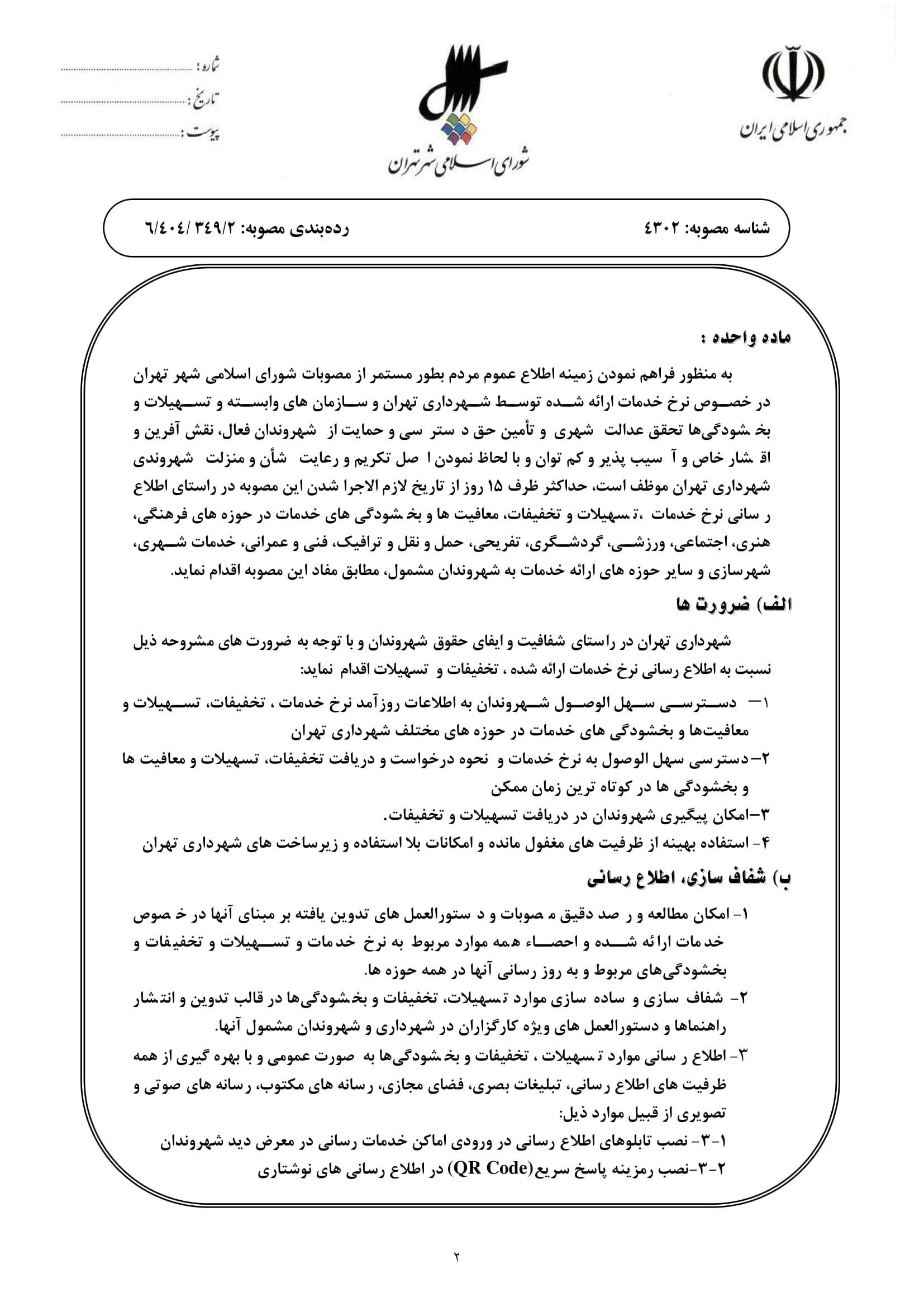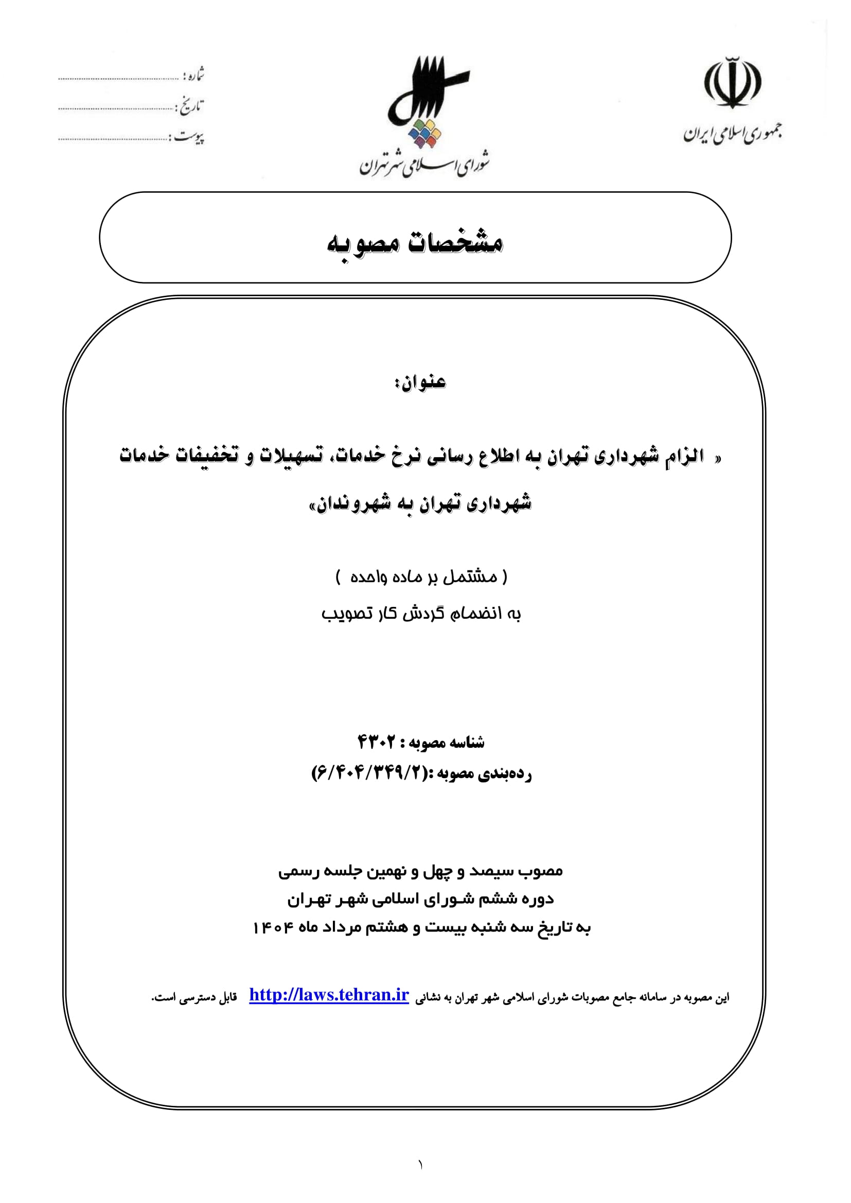 الزام شهرداري تهران به اطلاعرساني نرخ خدمات، تسهيلات و تخفيفات خدمات شهرداري تهران به شهروندان