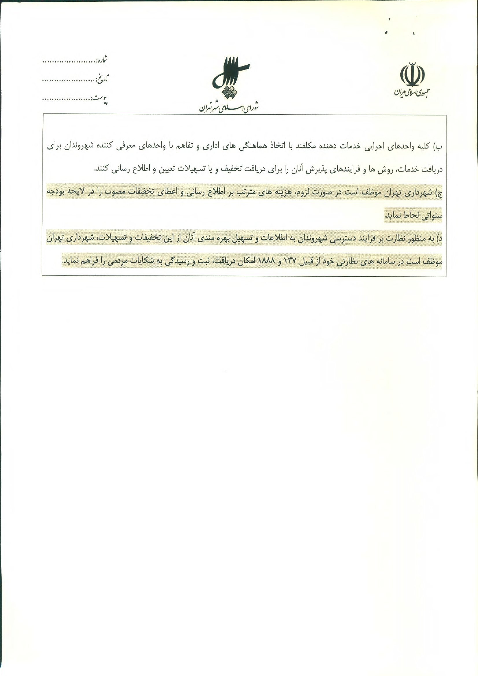 الزام شهرداري تهران به اطلاعرساني نرخ خدمات، تسهيلات و تخفيفات خدمات شهرداري تهران به شهروندان