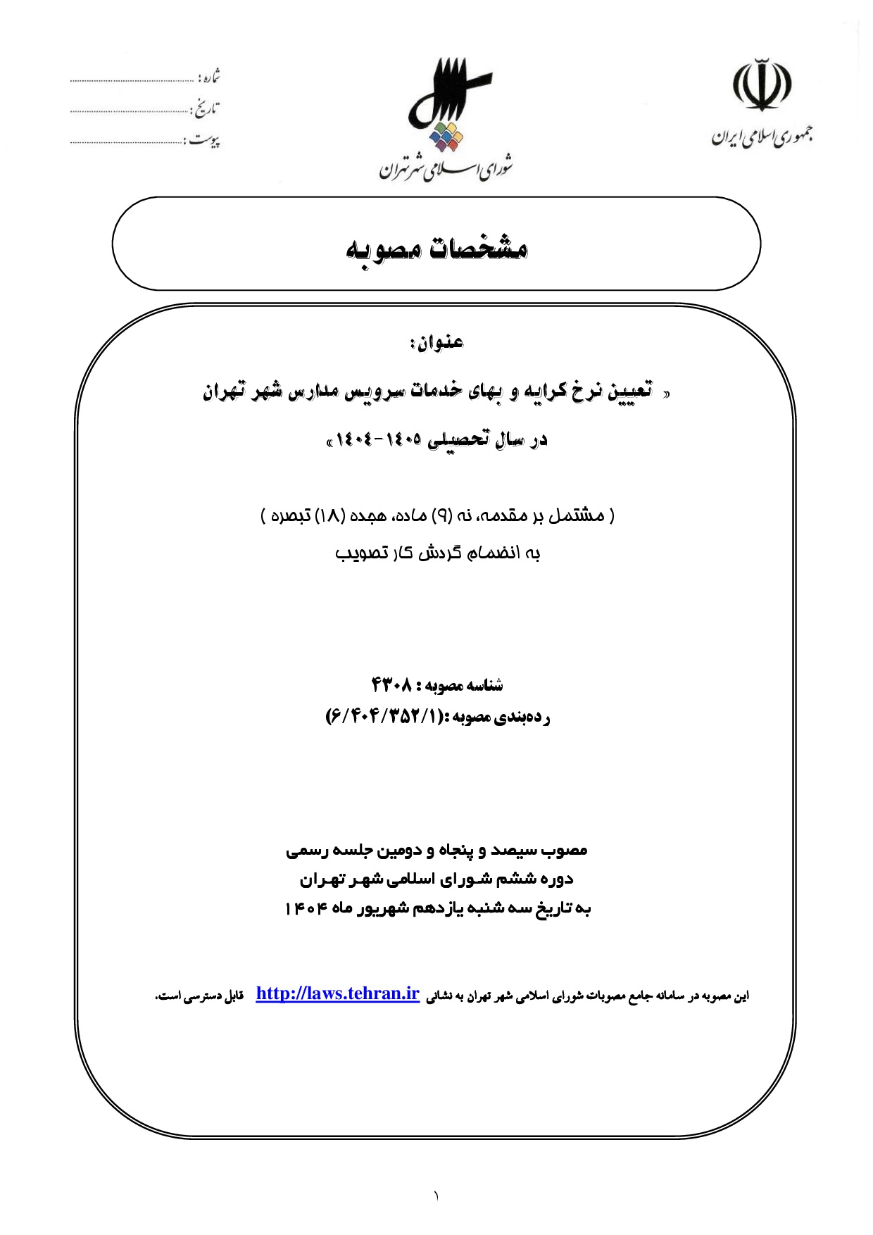 -صفحه مشخصات مصوبه