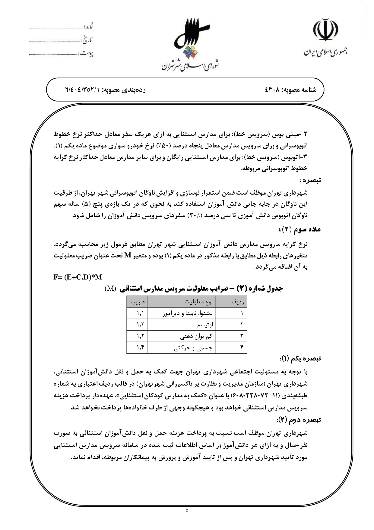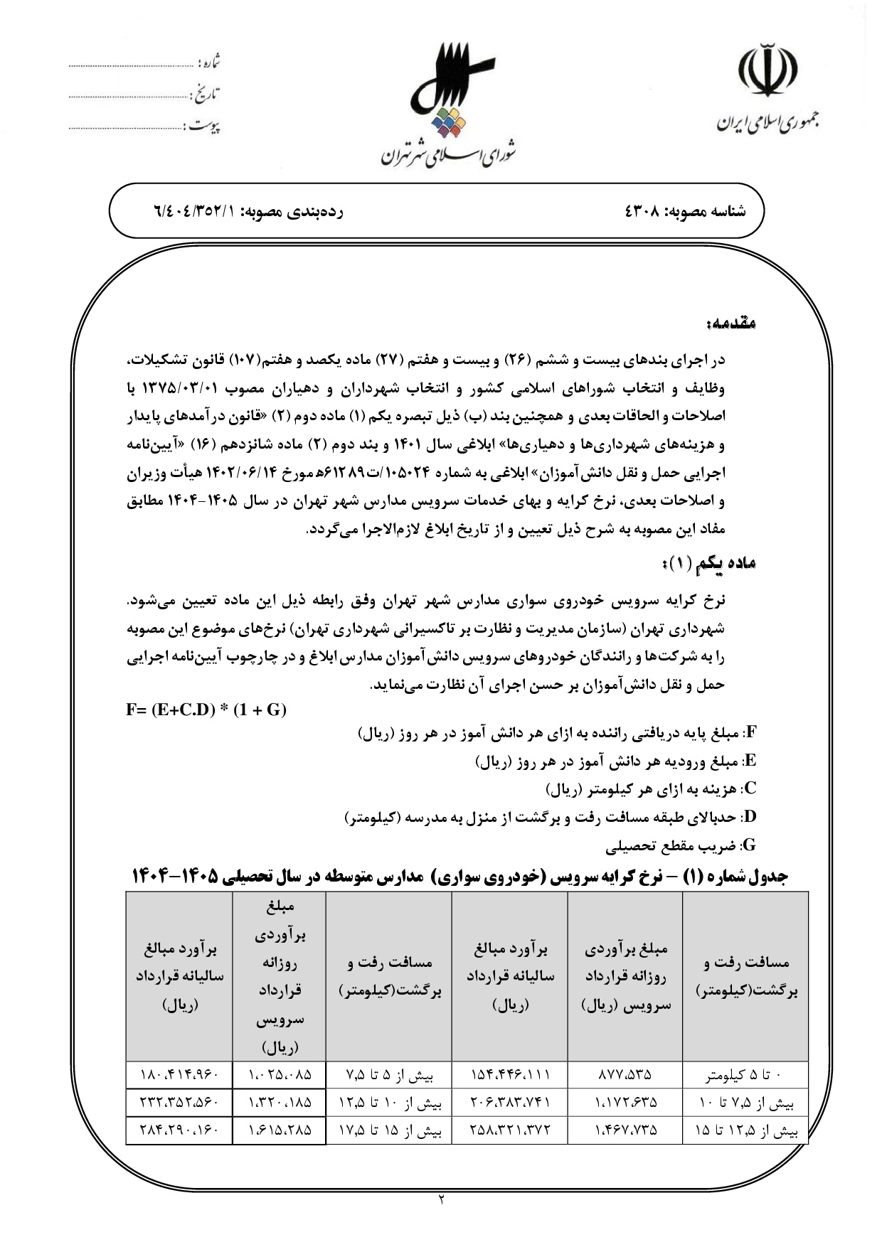 تعيين نرخ كرايه و بهاي خدمات سرويس مدارس شهر تهران در سال تحصيلي 1405-1404