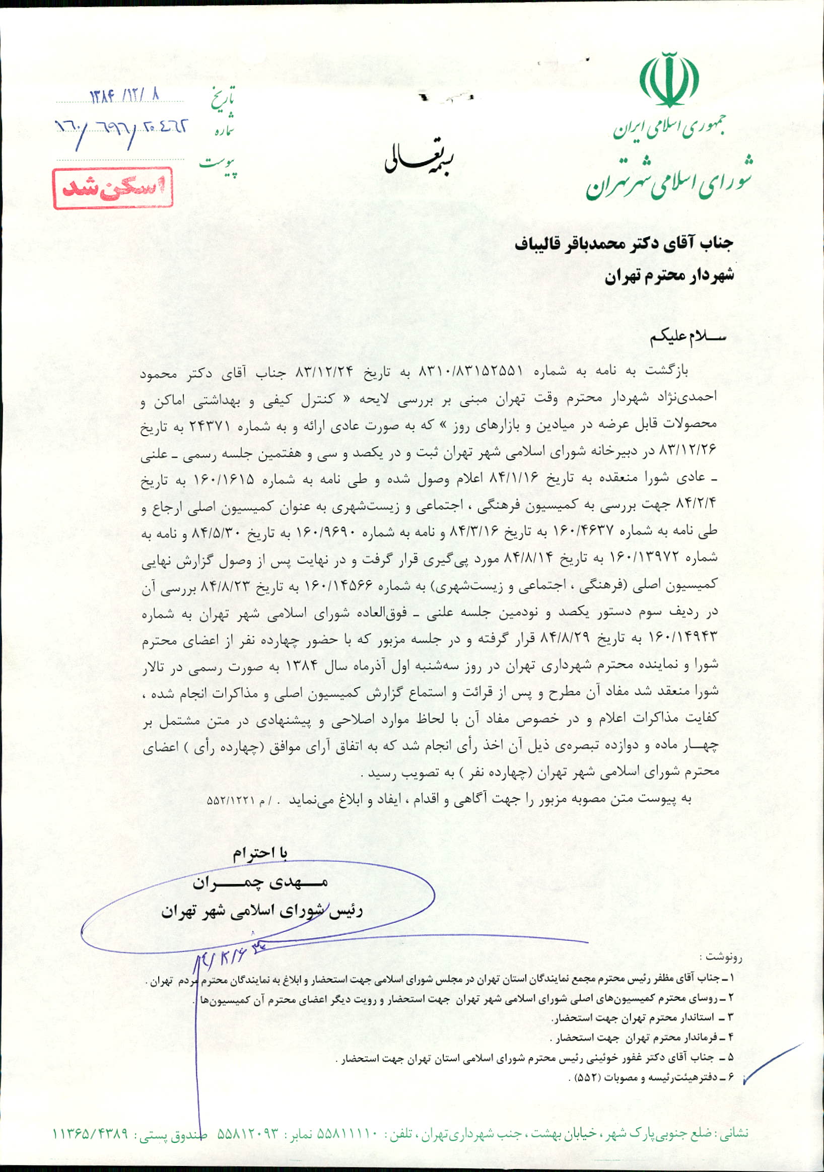 تاریخ صدور(ابلاغ) : 1384/12/08