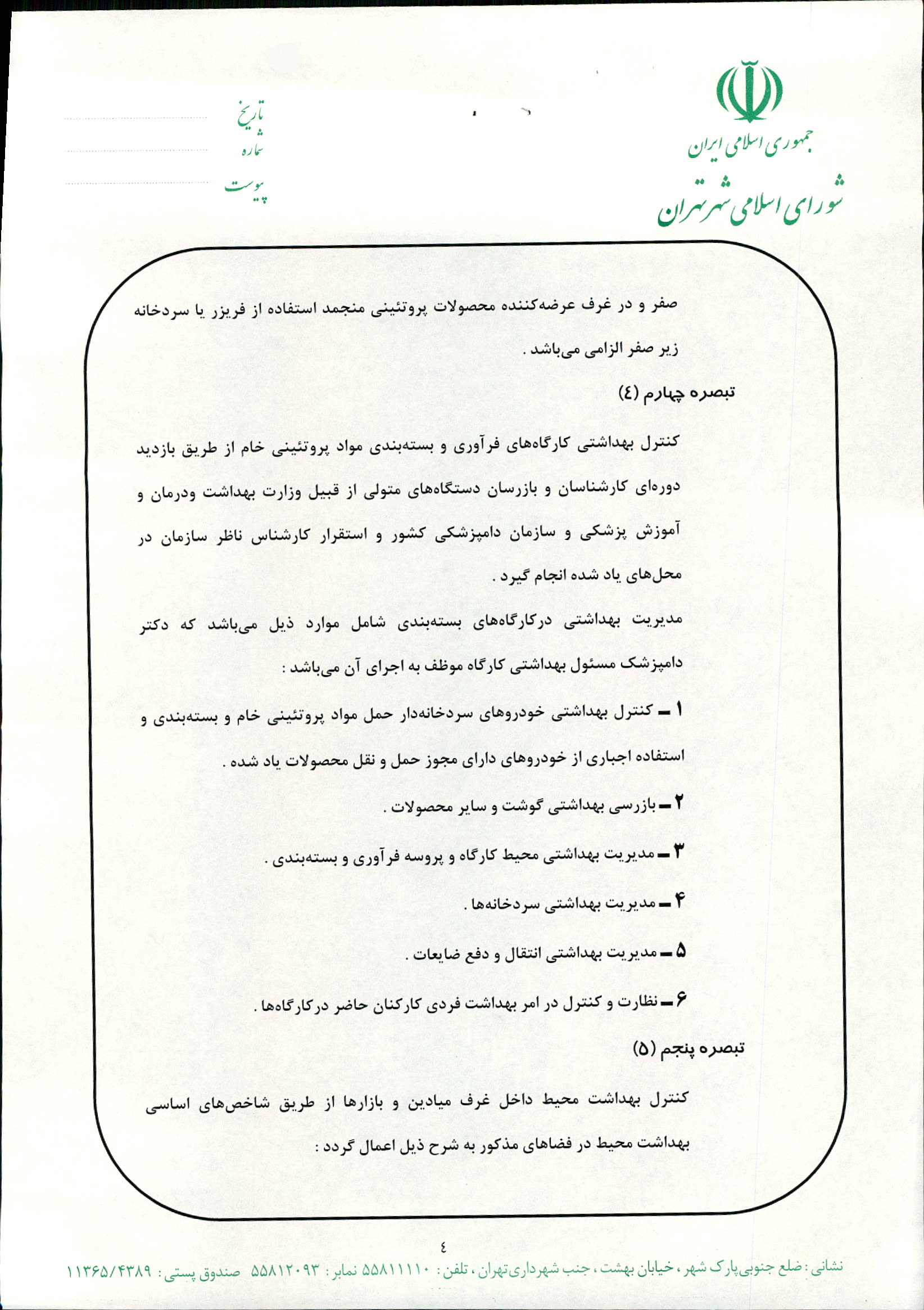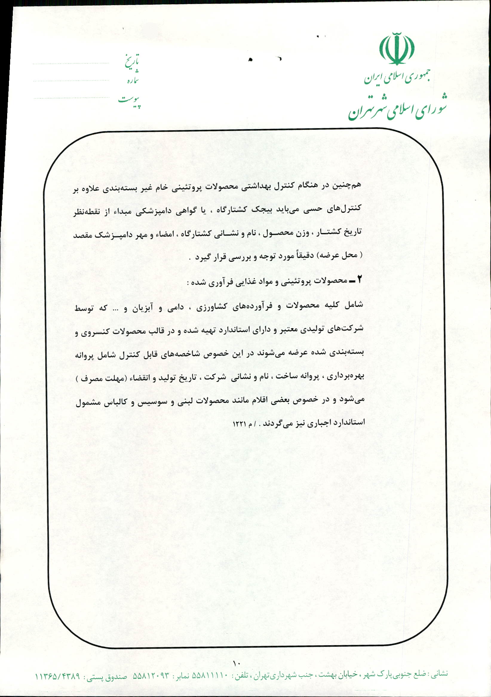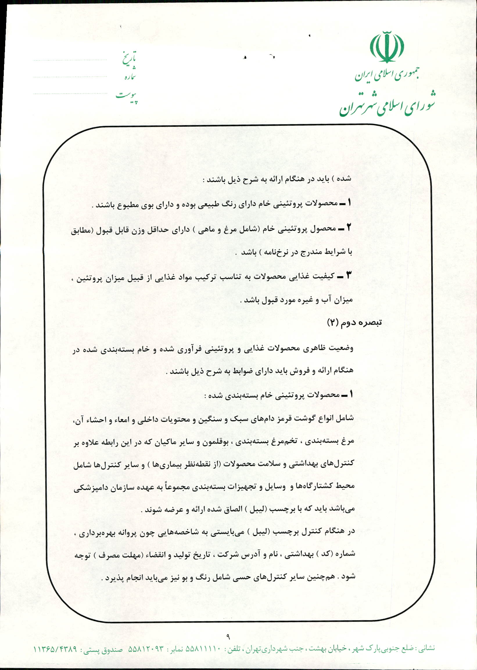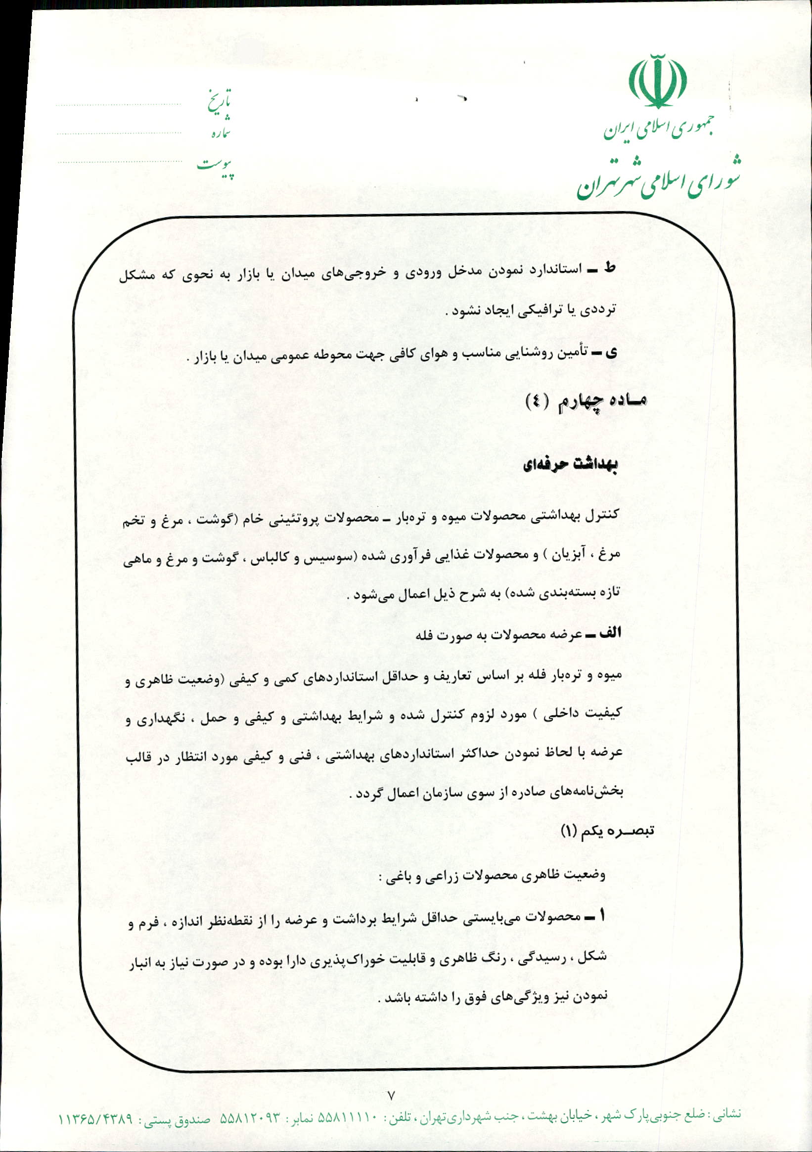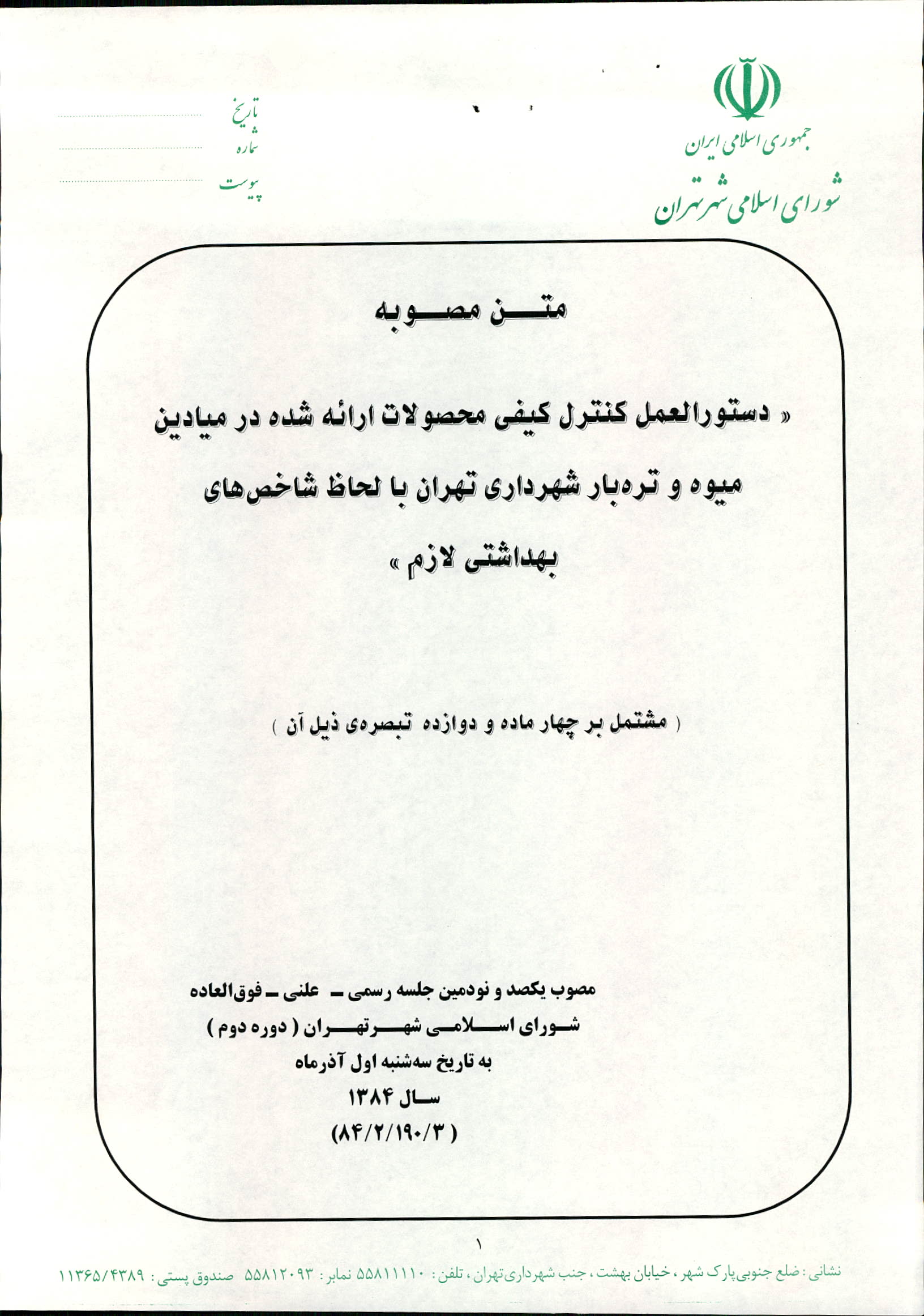 دستورالعمل كنترل كيفي محصولات ارائه شده در ميادين ميوه و ترهبار شهرداري تهران با لحاظ شاخصهاي بهداشتي لازم
