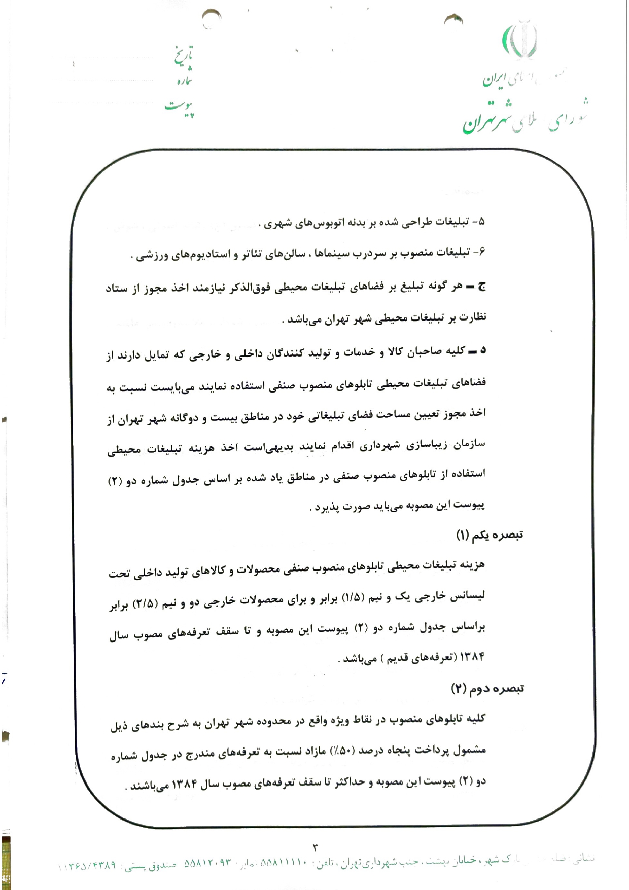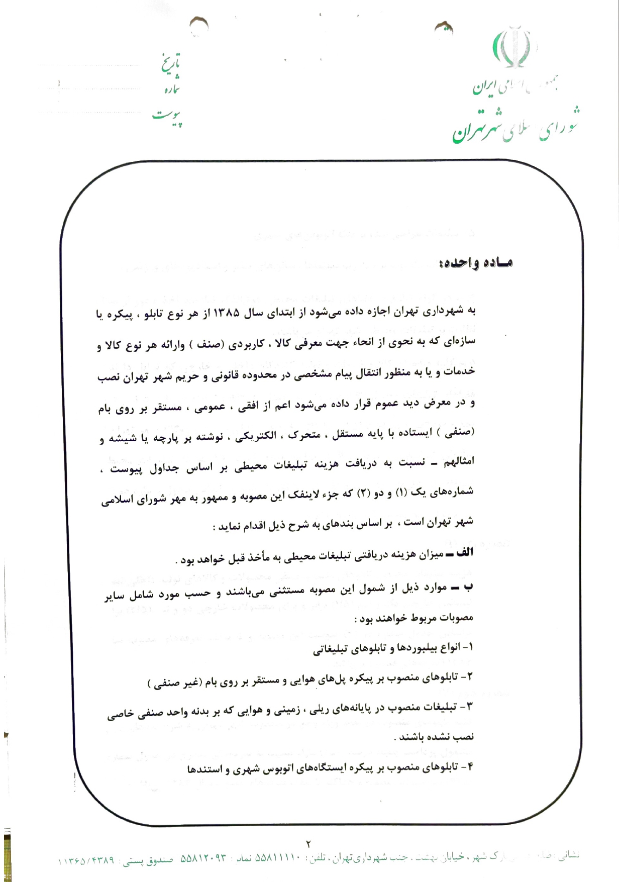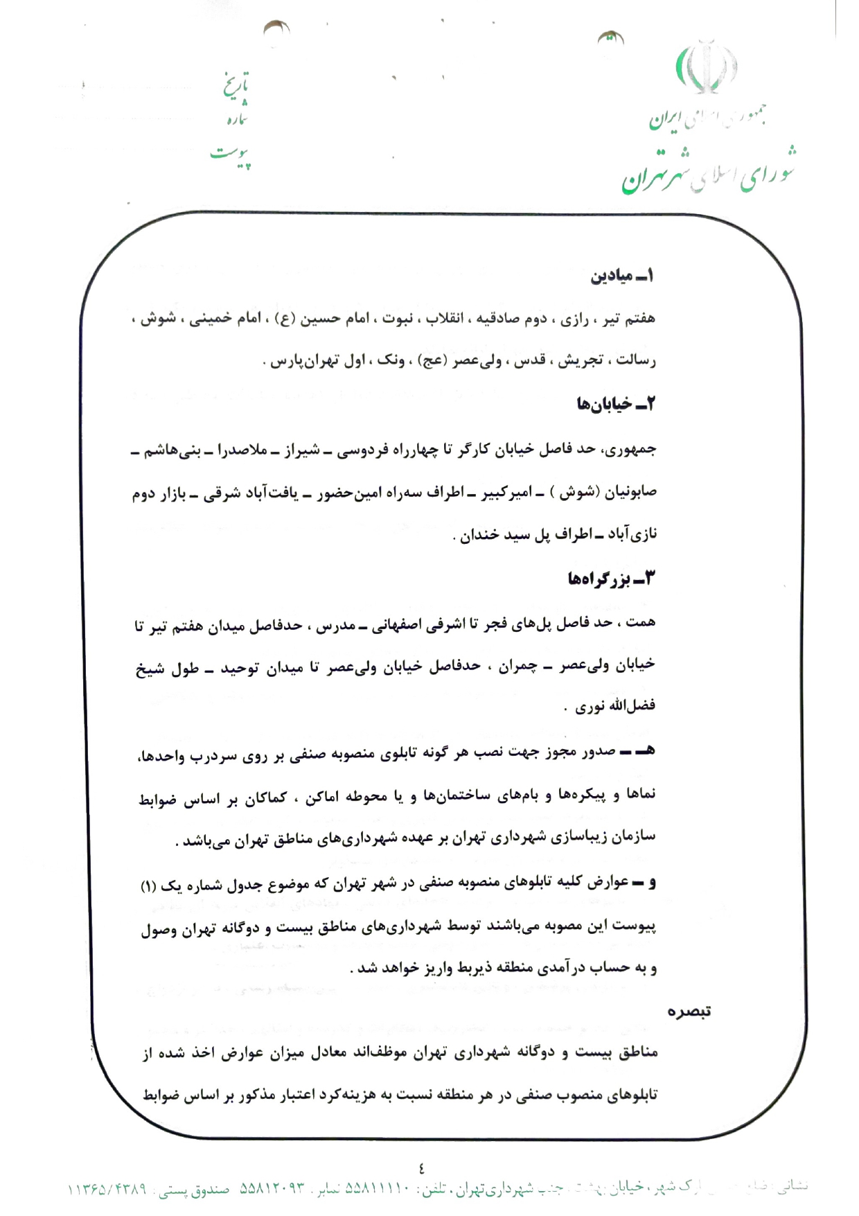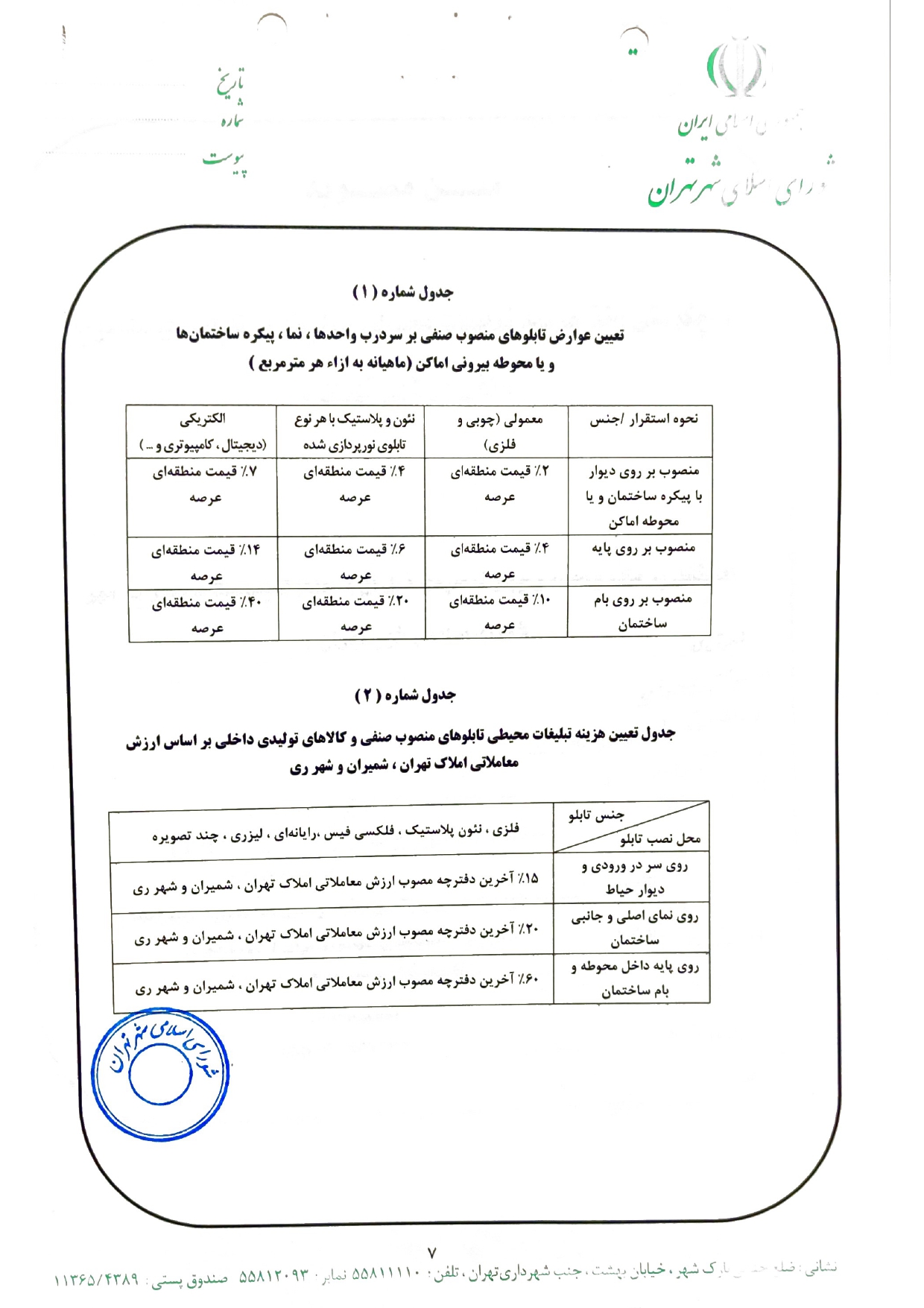 چگونگي اخذ هزينههاي تبليغات محيطي ماهيانه از تابلوهاي منصوب صنفي در شهر تهران