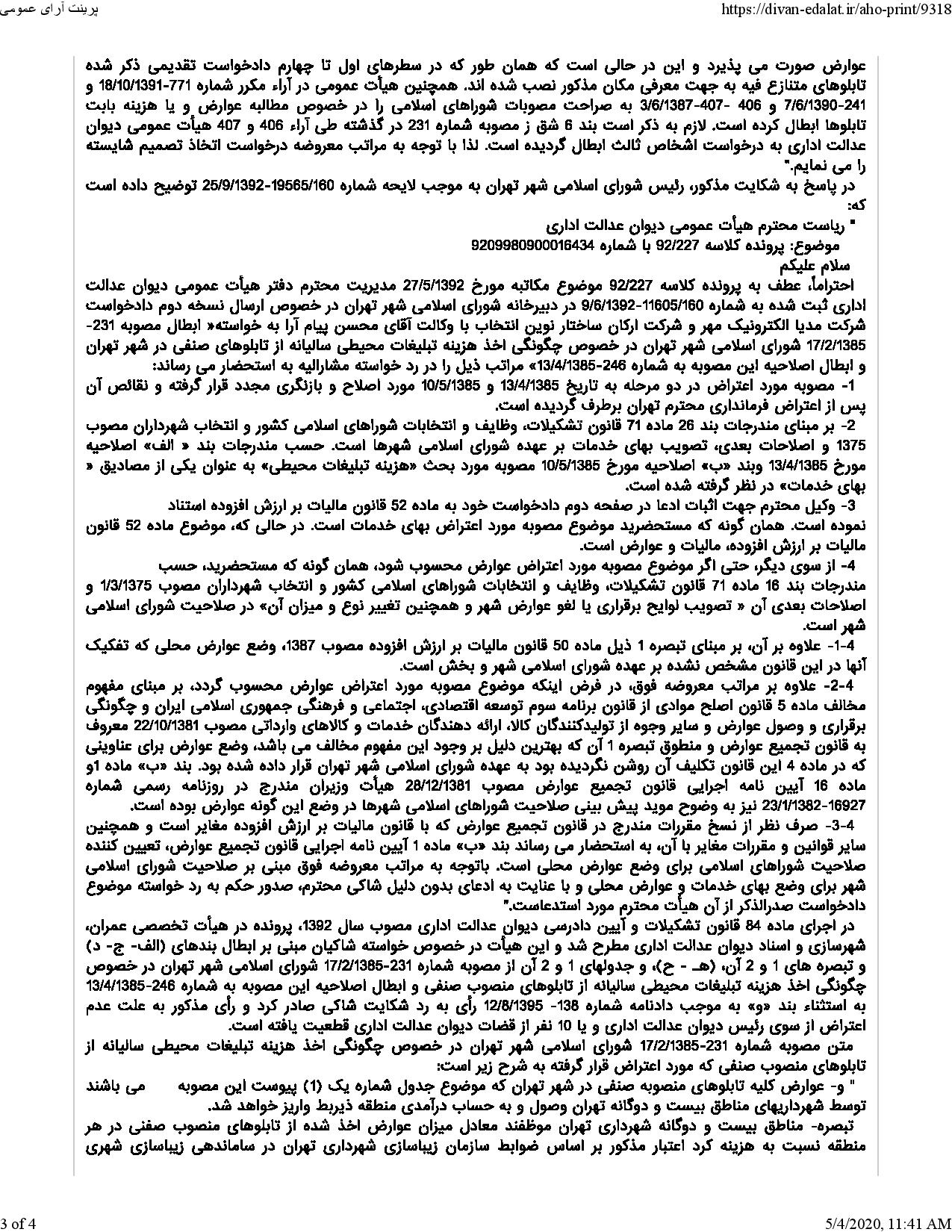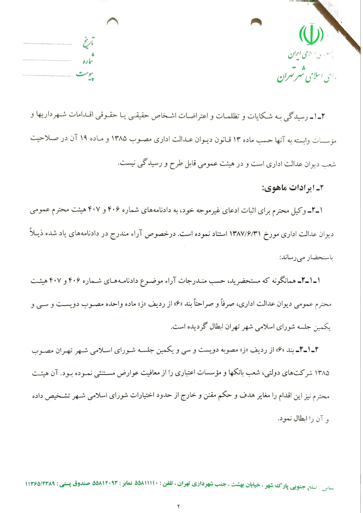 دادخواست شاکی به هیات عمومی دیوان عدالت اداری و لایحه دفاعیه شورا