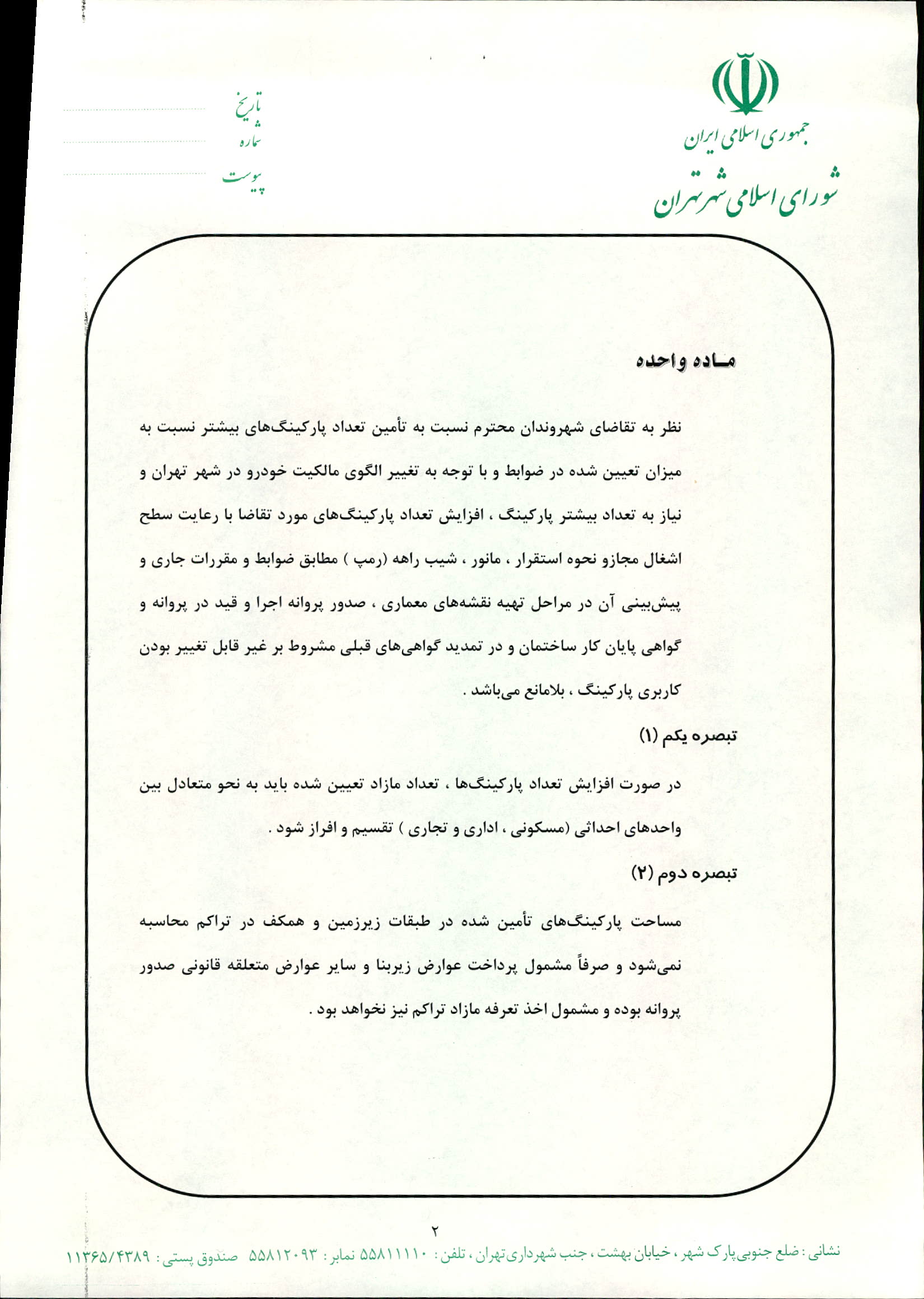 مجوز احداث پاركينگ اضافي در واحدهاي مسكوني با تسهيلات