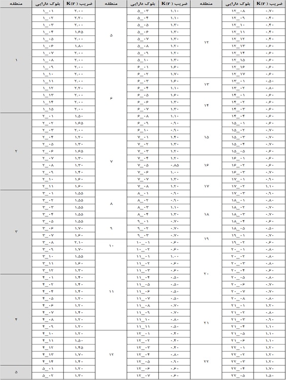 تبصره پنجم (5): در مورد گذرهاي فصل مشترك مناطق ضريب k(r) بزرگتر ملاك عمل ميباشد.