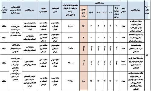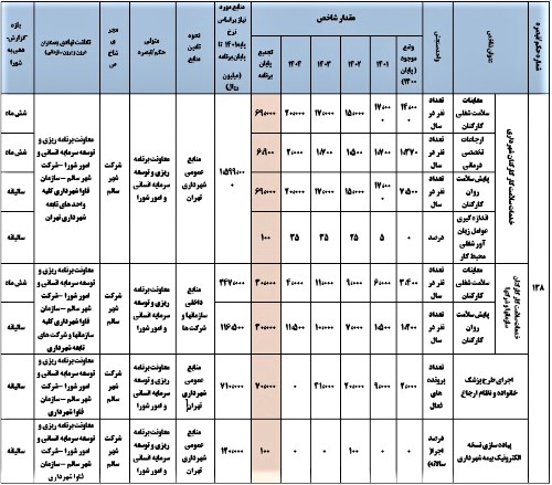 بخش 18: شهرداري تهران موظف است در راستاي عارضهسنجي پروژههاي شهري، بهبود روند بودجهريزي مشاركتي، كاهش دعاوي حقوقي نسبت به اجراي احكام ذيل اقدام نمايد: