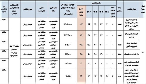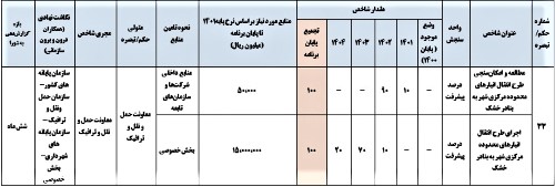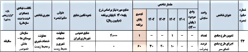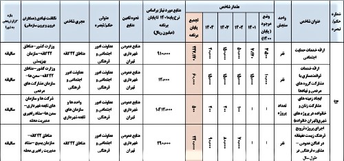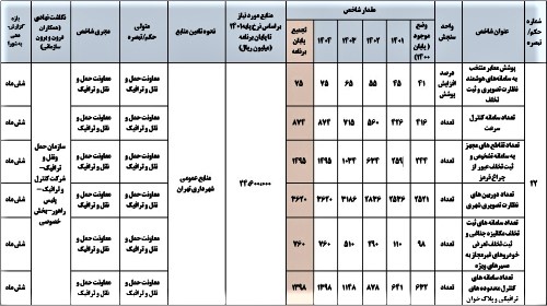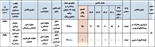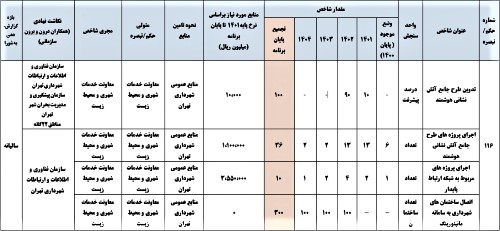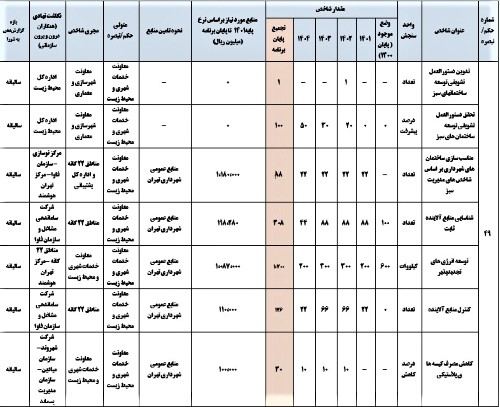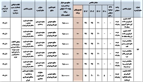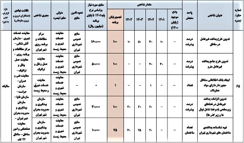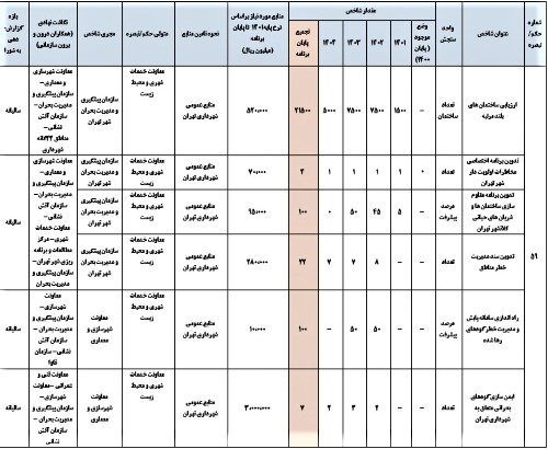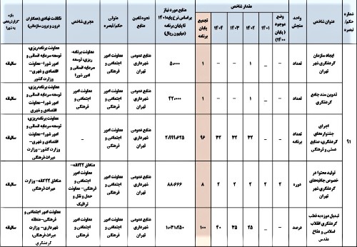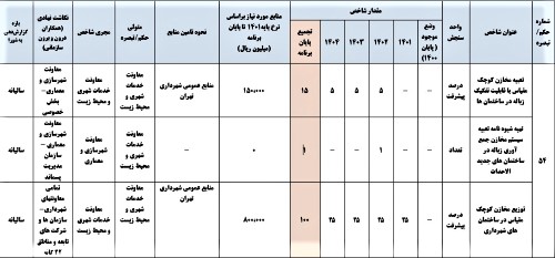 بخش20: شهرداري تهران موظف است به منظور پايش، ارزيابي و دستيابي به اهداف برنامه چهارم تحول و پيشرفت شهر تهران، نسبت به اجراي احكام ذيل اقدام نمايد: