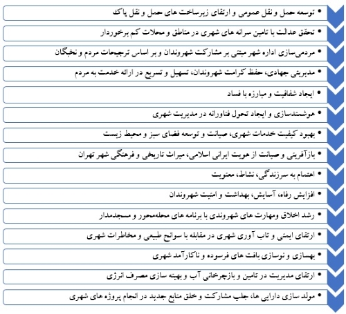 1) تهران؛ شهري با اصالت و هويت ايراني اسلامي (شهري كه براي رشد و تعالي انسان و حيات طيبه، سامان مييابد)