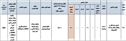 حكم 119- بازنگري در ضوابط تأسيس و بازطراحي نقش و وظايف دفاتر خدمات الكترونيك شهر و ارائه لايحه آن به شوراي اسلامي شهر تهران تا حداكثر هشت ماه پس از ابلاغ برنامه