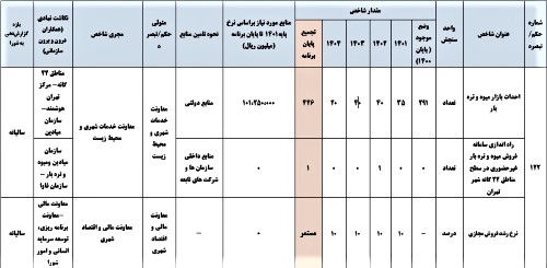 تبصره 2: توسعه ميادين و بازارچههاي محلي ميوه و ترهبار مورد نياز به ميزان افزايش 135 بازار جديد تا پايان برنامه