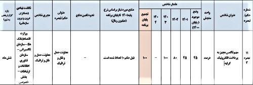 تبصره 3: استقرار و بكارگيري سيستم پرداخت الكترونيك بطور كامل در ناوگان تاكسيراني شهر تهران تا پايان برنامه