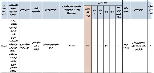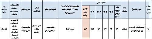 حكم 2- تكميل، توسعه و بهرهبرداري كامل از خطوط 1 تا 7 سامانه مترو مطابق با طرح جامع ريلي تا پايان برنامه