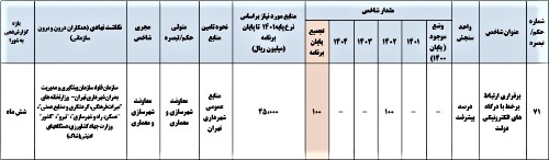 بخش16: شهرداري تهران موظف است در راستاي ارتقاي كارايي و بهرهوري مديريت سازماني، استفاده از ظرفيتهاي دانشبنيان و بهكارگيري سيستمهاي هوشمند در مديريت، نسبت به اجراي احكام ذيل اقدام نمايد: