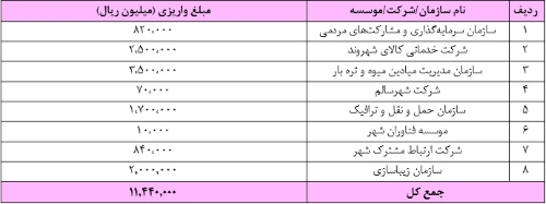 سازمانها، شركتها و مؤسسات شهرداري تهران ميبايست نسبت به واريز سود انباشته خود مطابق جدول شماره يك به حساب خزانه شهرداري تهران اقدام نمايند.