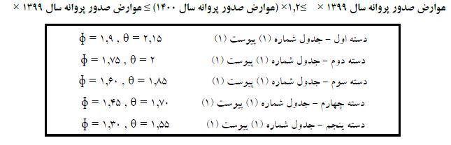 پیوست در قسمت تصاویر قابل مشاهده است. تبصره سوم (3): درآمد حاصله از مفاد بند (4) اين ماده به حساب مندرج در ماده هشتم (8) مصوبه "نحوه محاسبه عوارض ساختماني مبتني بر ارزش مكاني املاك در شهر تهران" ابلاغي به شماره 160/2733/25414 مورخ 1399/11/14 واريز و براي تامين سرانههاي خدمات عمومي و شهري هزينه گردد. شهرداري تهران موظف است هر 3 ماه يك بار گزارش درآمدهاي حاصله از اين بند را به شوراي اسلامي شهر تهران ارائه نمايد. تبصره چهارم (4): شهرداري تهران موظف است به منظور بررسي و تدقيق ضريب y جهت محاسبات عوارض در سال 1402 بر اساس ارزش مرغوبيت مكاني و به تفكيك مصاديق، گزارش اجراي اين بند را حداكثر تا پايان شهريور ماه سال 1401 به كميسيون شهرسازي و معماري شوراي اسلامي شهر تهران ارائه نمايد. تبصره پنجم(5): عوارض موضوع بند (4) مشمول ضرايب ɸ و θ بند يك (1) و مفاد بند دو (2) اين ماده نميگردند. ماده سوم(3):