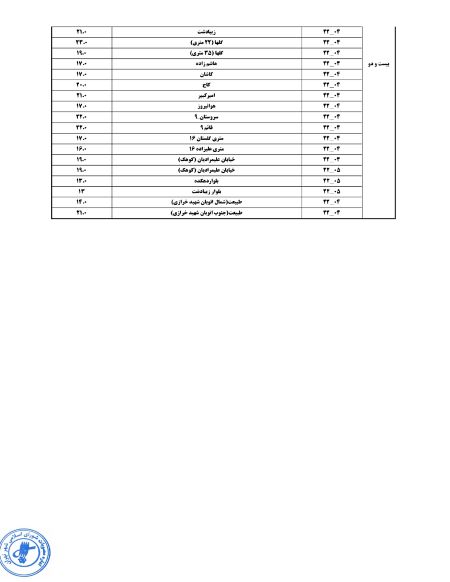 * ملاك محاسبه طبقات در جدول فوق از صفر- صفر دستور نقشه پلاك ميباشد. در سند تصویب تاریخ تصویب آييننامه اجرايي قانون توسعه صنعت ايرانگردي و جهانگردي به اشتباه 1383/4/15 درج شده است که به این ترتیب اصلاح شد. تبصره چهل و پنجم (45): كليه تسهيلات ارائه شده به بناهاي خدماتي مطابق با مصوبات «اصلاحيه مصوبه چگونگي جلب و جذب مشاركت بخش خصوصي در توسعه مجتمعهاي فرهنگي و سينمايي شهر تهران» ابلاغي به شماره 160/1390/18581 مورخ 1388/12/10، مصوبه "ساماندهي و توسعه تأسيسات گردشگري" ابلاغي به شماره 160/907/7335 مورخ 1386/05/01 و مصوبه «پاسخ به استفساريه شهرداري تهران در خصوص چگونگي اجراي مصوبه ساماندهي و توسعه تأسيسات گردشگري شهر تهران» ابلاغي به شماره 160/1770/10607 مورخ 1392/05/27، مصوبه «چگونگي اعطاي تسهيلات تشويقي به واحدهاي توليد نان (سنتي، حجيم، نيمه حجيم، مسطح، خمير منجمد و نان نيم پز)» ابلاغي به شماره 160/1446/7642 () مورخ 1389/05/25، مصوبه «ساماندهي حمايت از ناشران، موزعين و كتابفروشان» ابلاغي به شماره 160/1355/15998 مورخ 1388/10/28 و مصوبه «اصلاحيه مصوبه فرآيند حمايت از ناشران، موزعين و كتابفروشان ابلاغي به شماره 160/1355/15998 مورخ 1388/10/28 و اصلاحيه بعدي آن ابلاغي به شماره 160/3005/16687 مورخ 1401/08/21 ملاك عمل ميباشد. ماده هفتم (7): عوارض تمديد و تجديد پروانه ساختماني مدت اعتبار پروانههاي ساختماني بر اساس جدول شماره بيست و دو (22) خواهد بود. در مواردي كه تاريخ اتمام عمليات ساختماني درج شده در پروانه ساختماني به پايان رسيده باشد در خصوص تمديد و تجديد پروانه به شرح زير اقدام گردد: