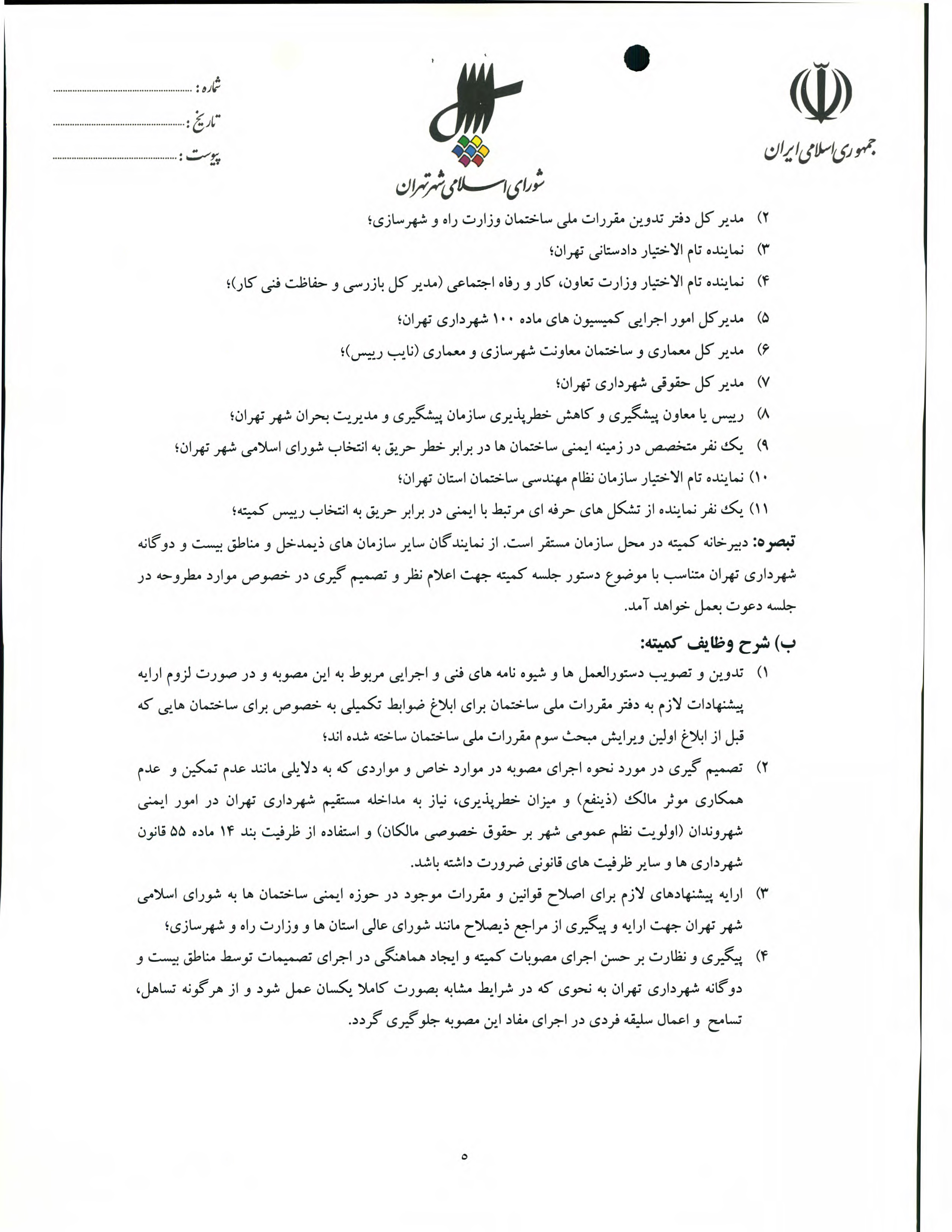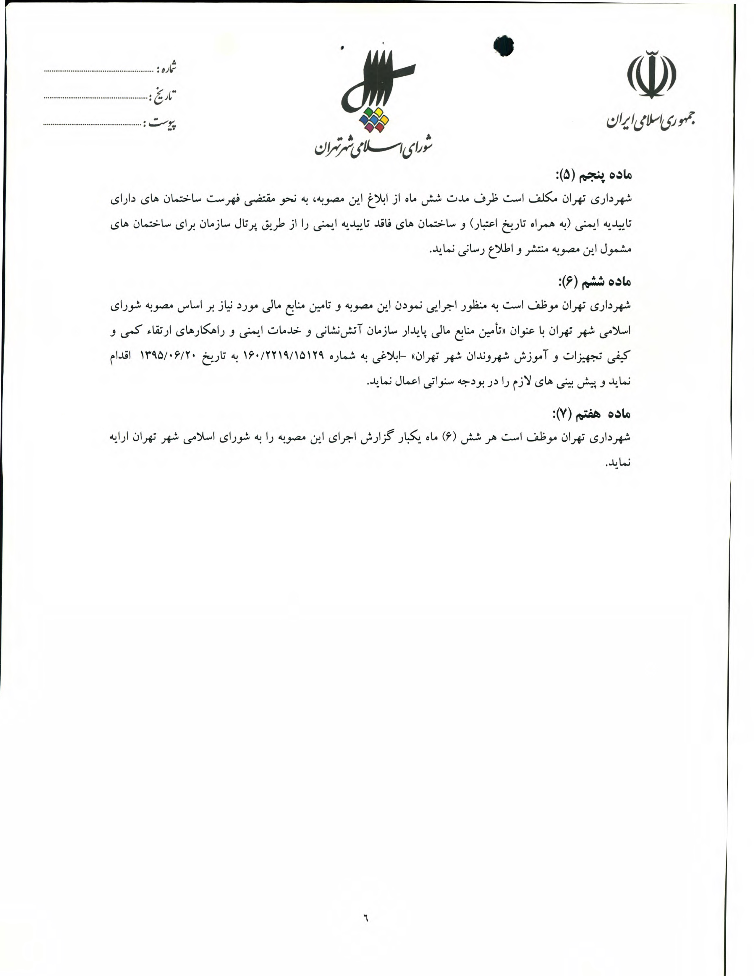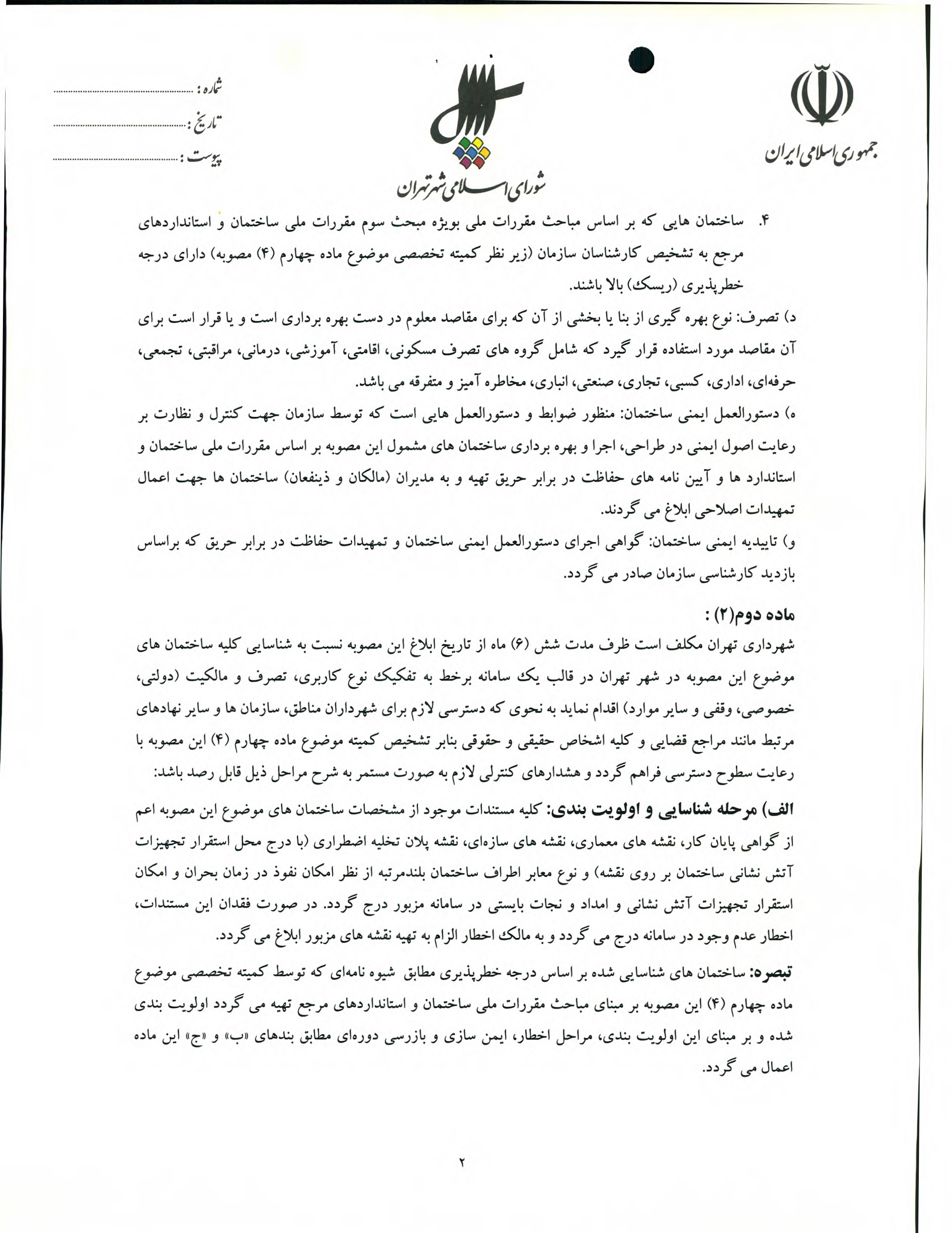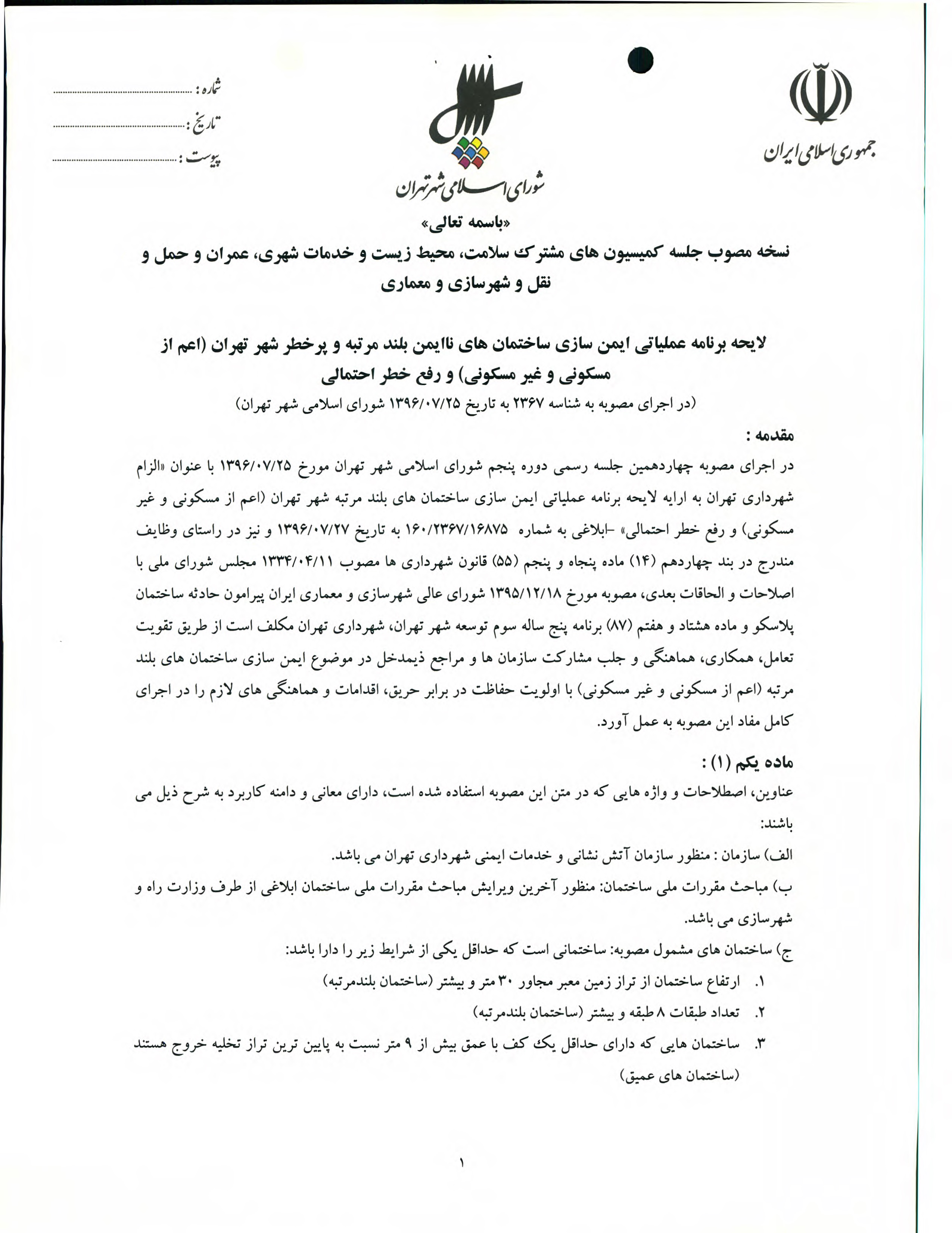 برنامه عملياتي ايمنسازي ساختمانهاي ناايمن بلندمرتبه پرخطر شهر تهران