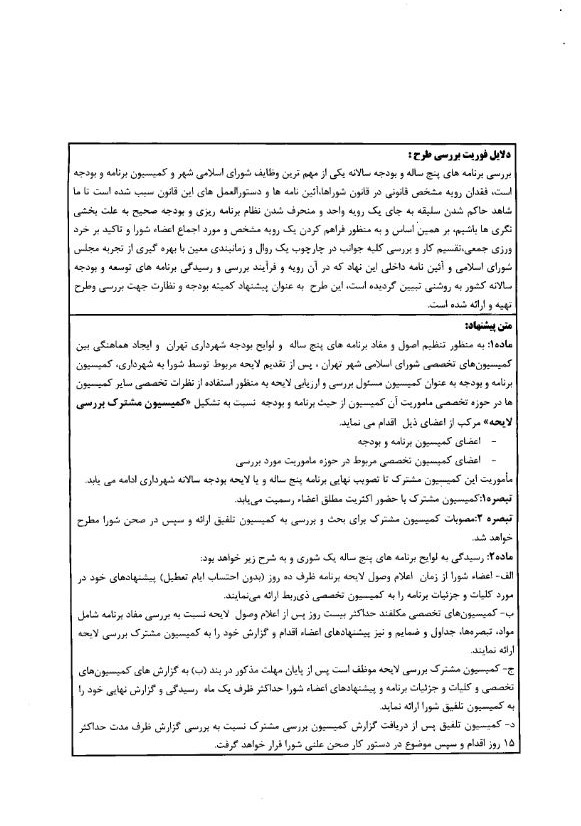 رويه رسيدگي و بررسي برنامههاي پنج ساله و بودجه سالانه شهرداري در شوراي اسلامي شهر تهران