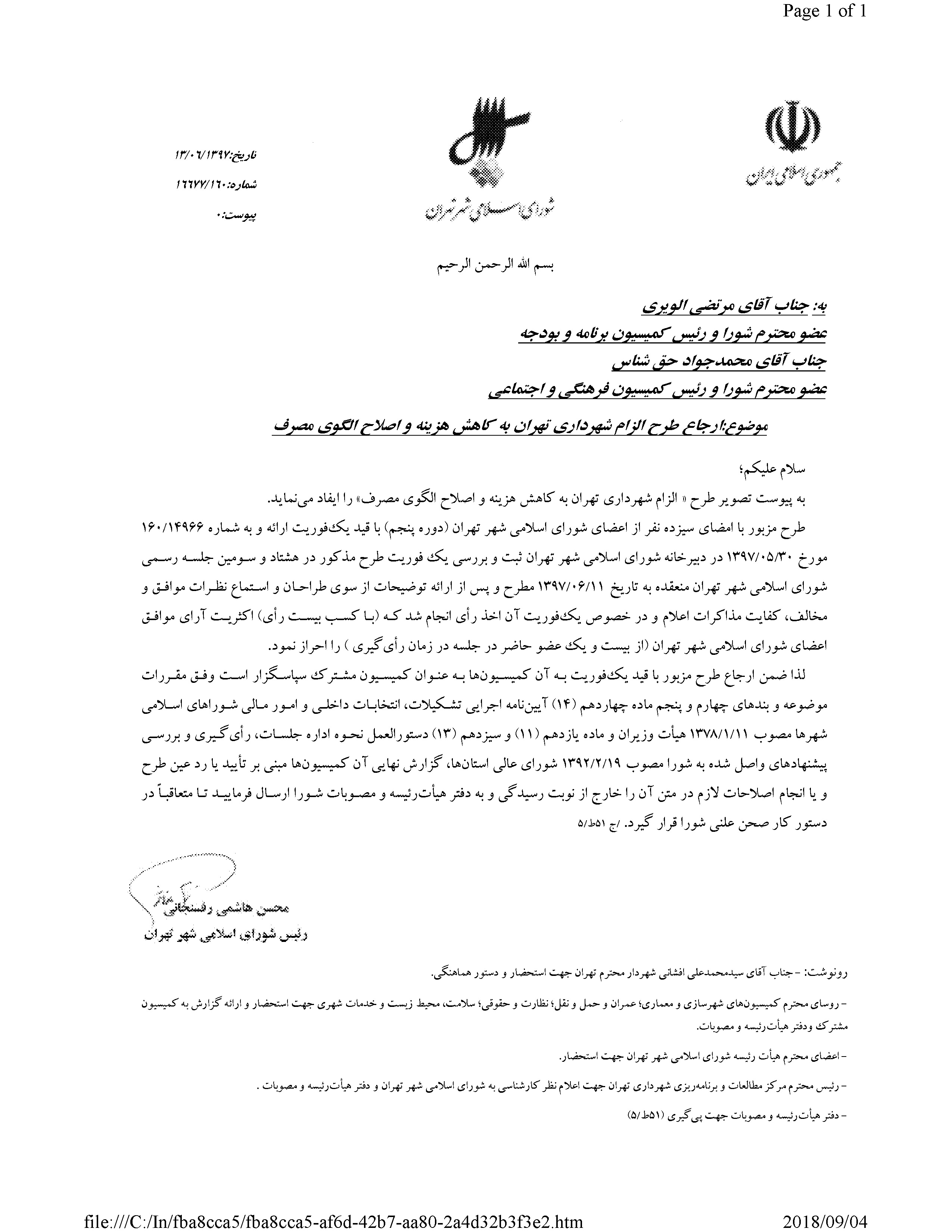 الزام شهرداري تهران به كاهش هزينه و اصلاح الگوي مصرف