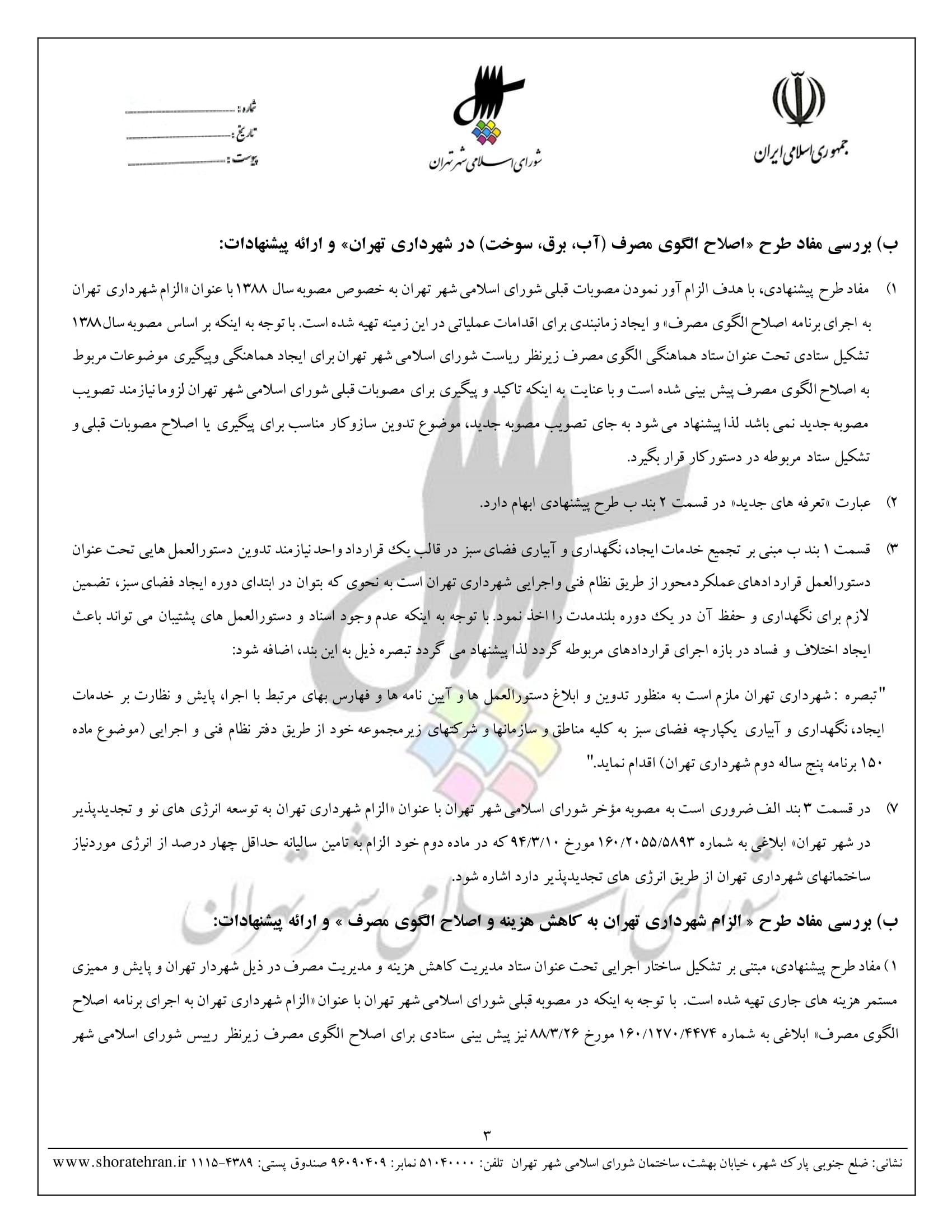 الزام شهرداري تهران به كاهش هزينه و اصلاح الگوي مصرف