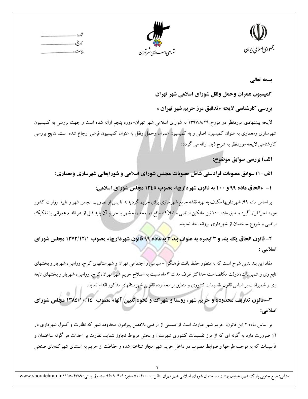 تدقيق مرز حريم شهر تهران