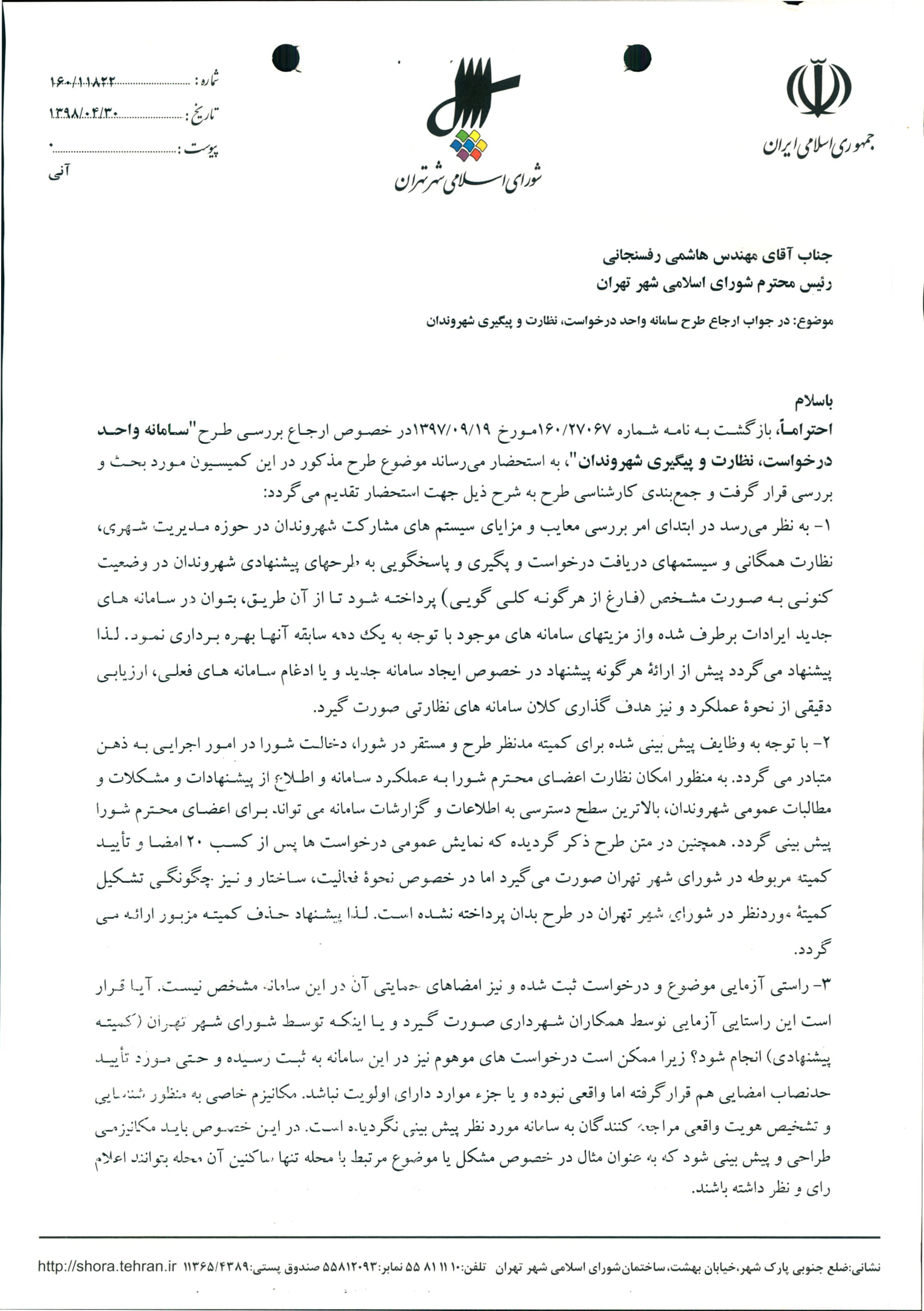 ايجاد سامانه واحد درخواست، نظارت و پيگيري شهروندان