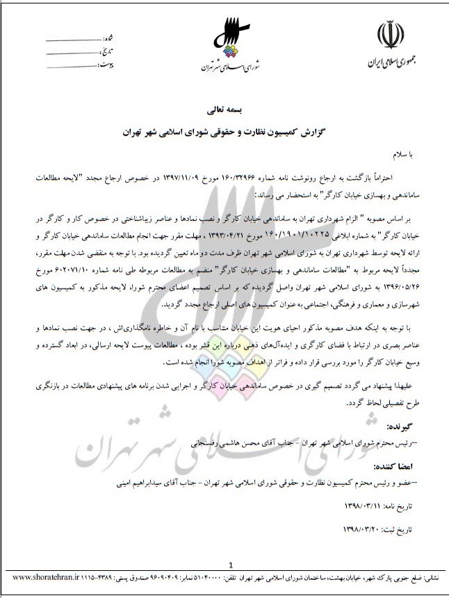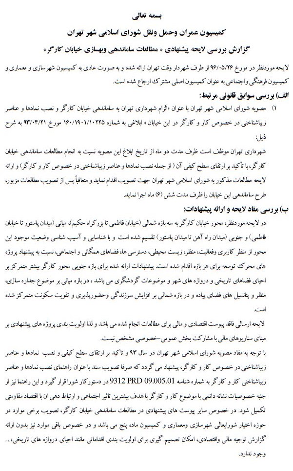 مطالعات ساماندهي و بهسازي خيابان كارگر