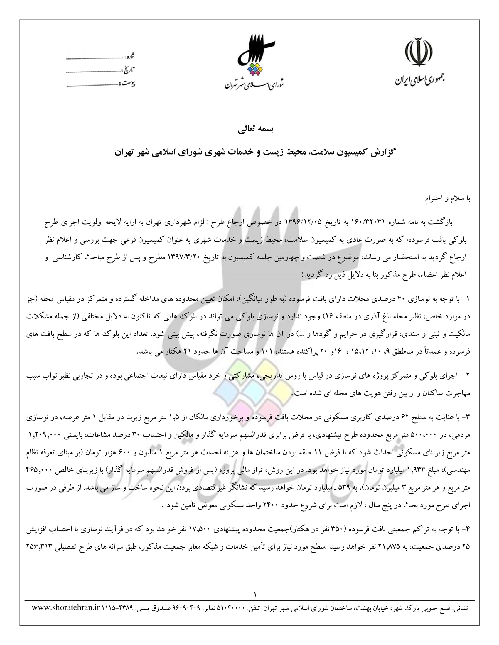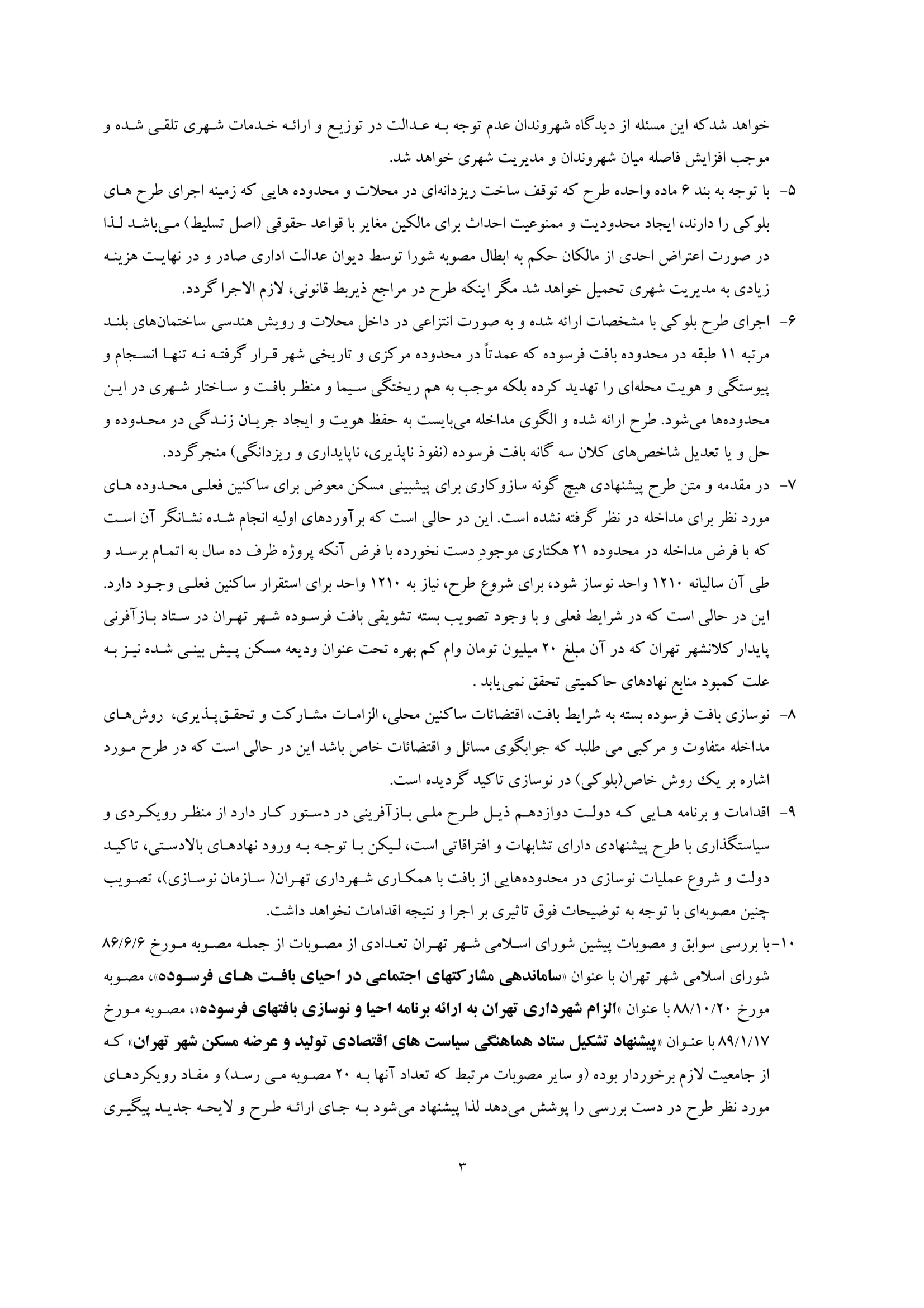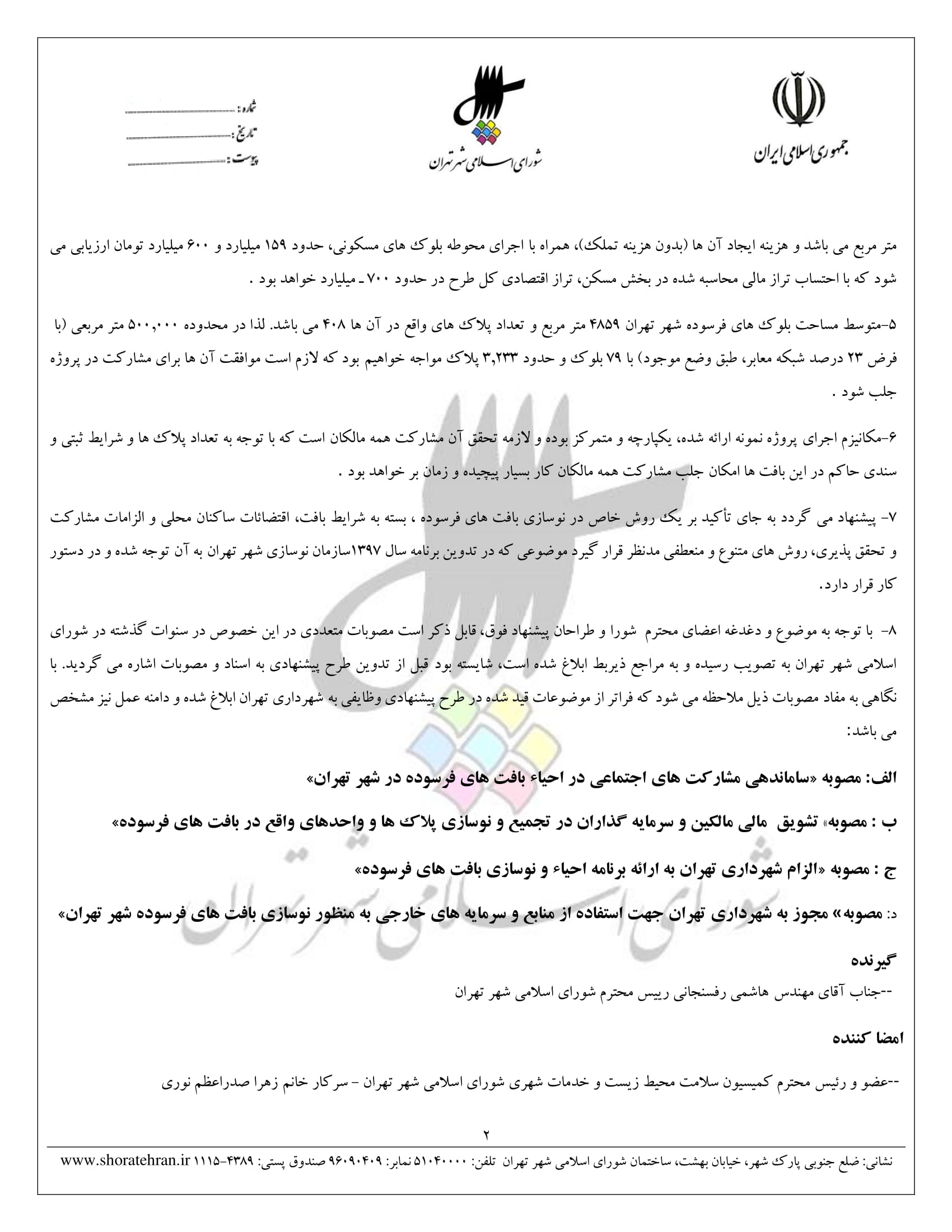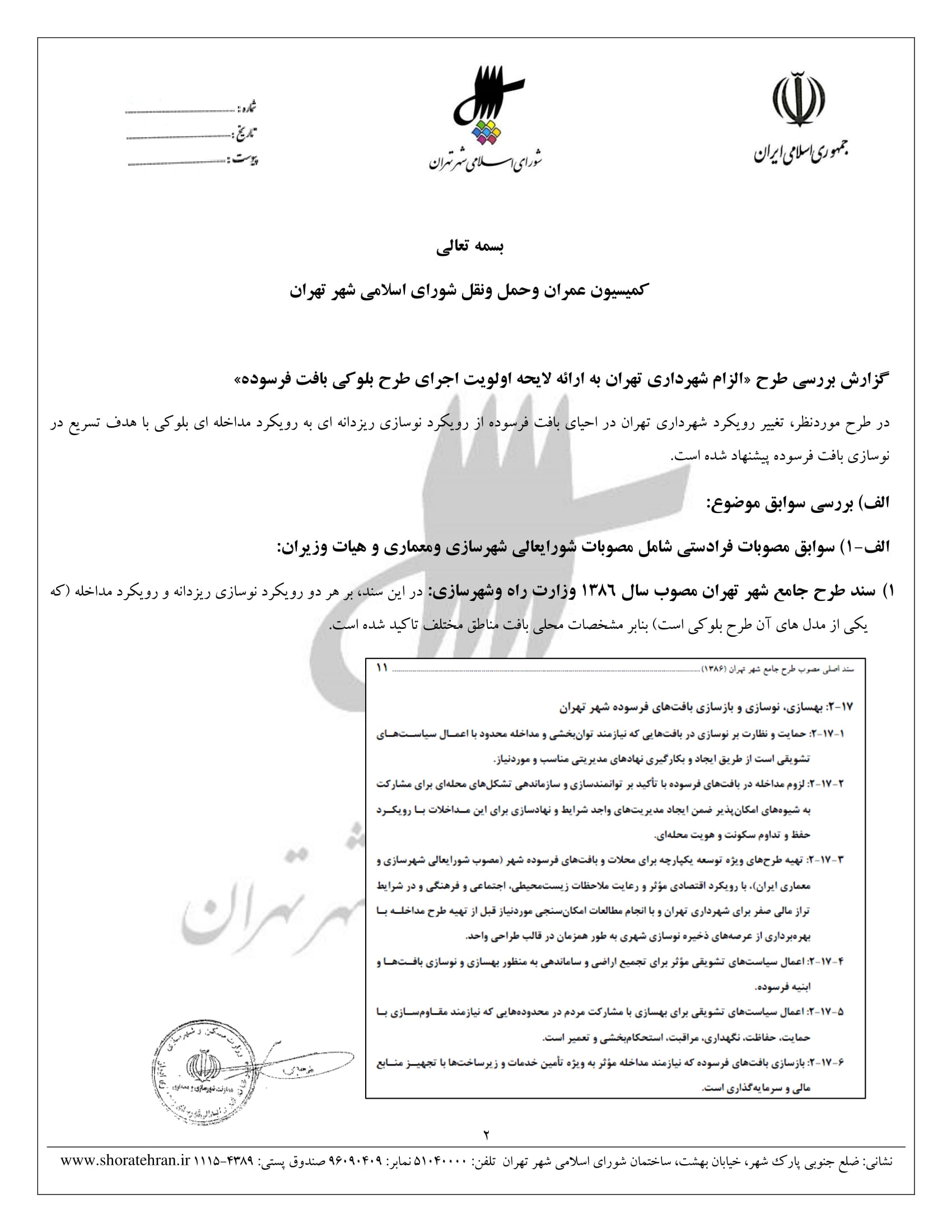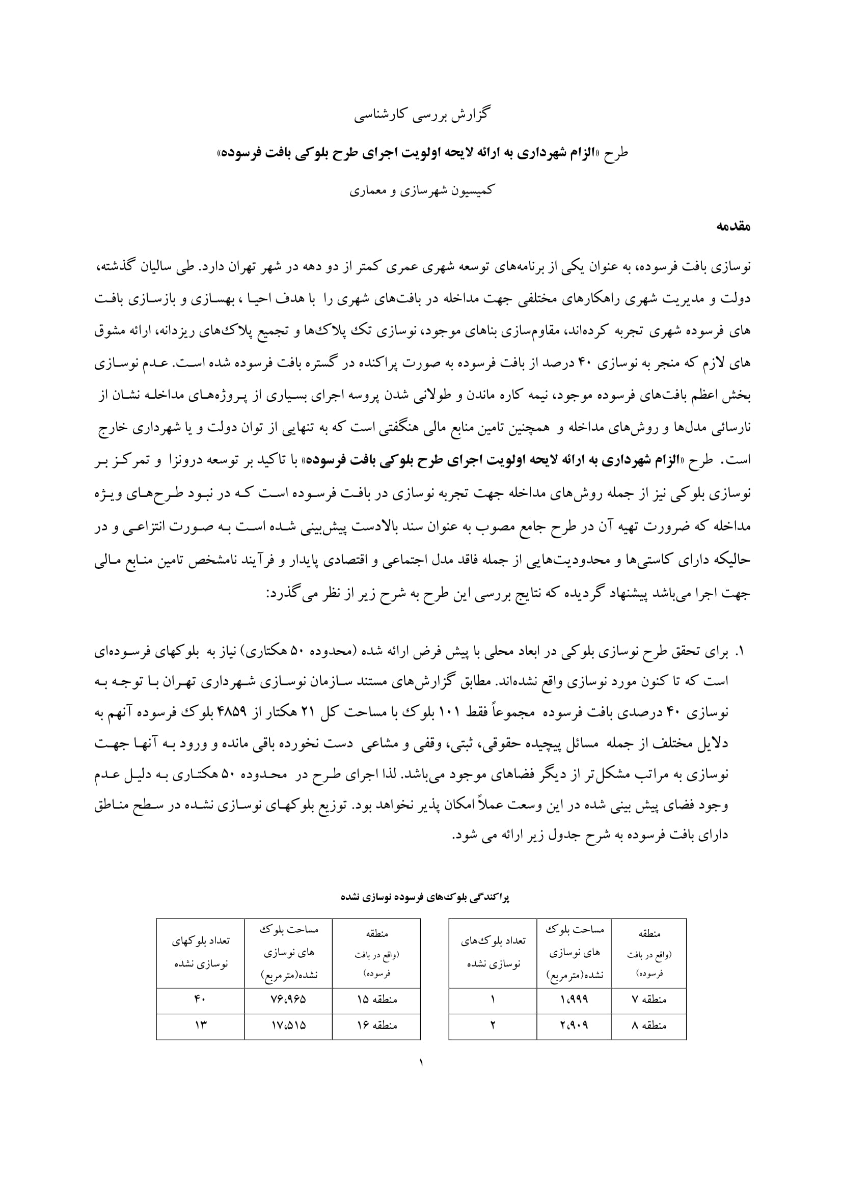 الزام شهرداري به ارائه لايحه اولويت اجراي طرح بلوكي بافت فرسوده