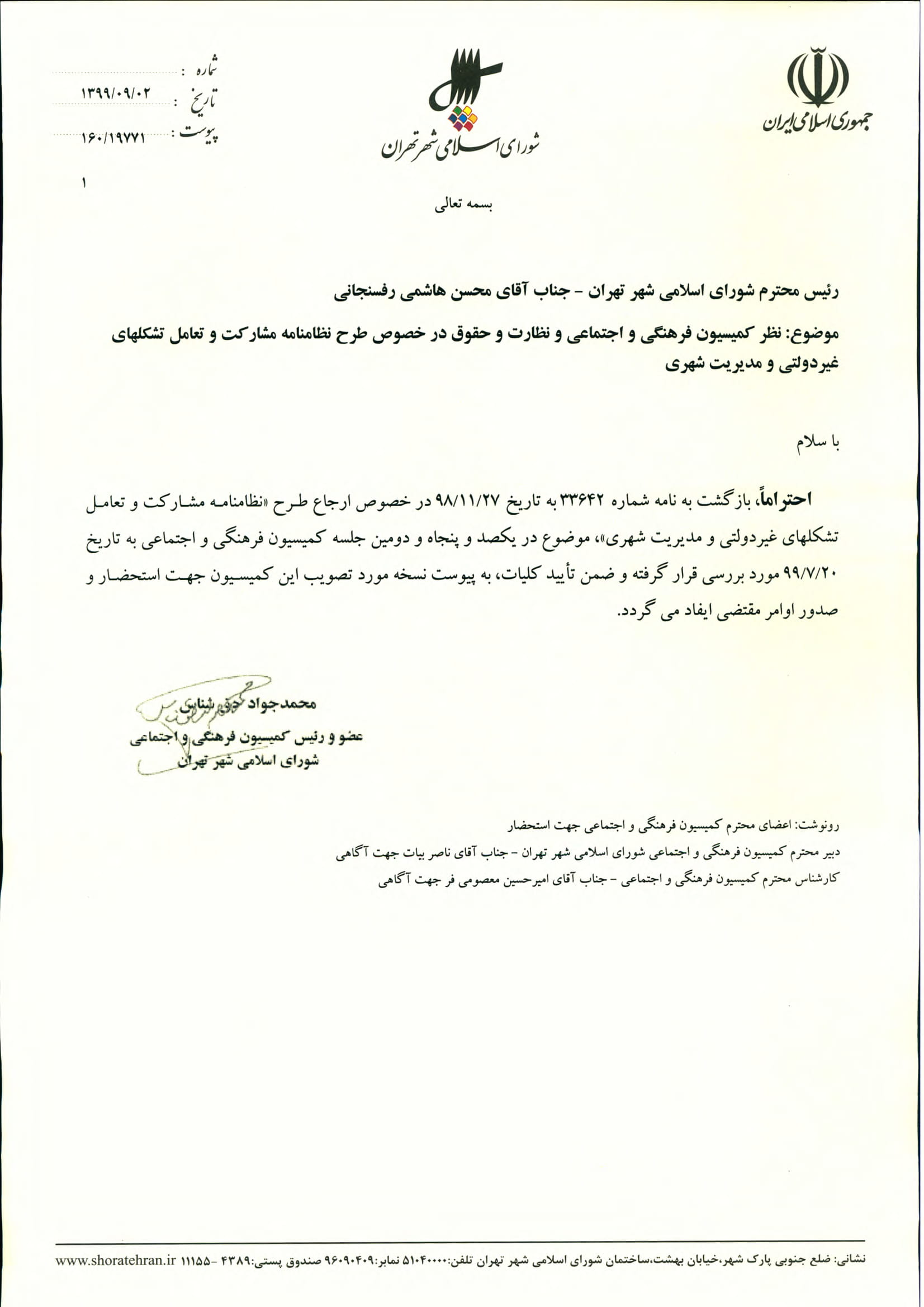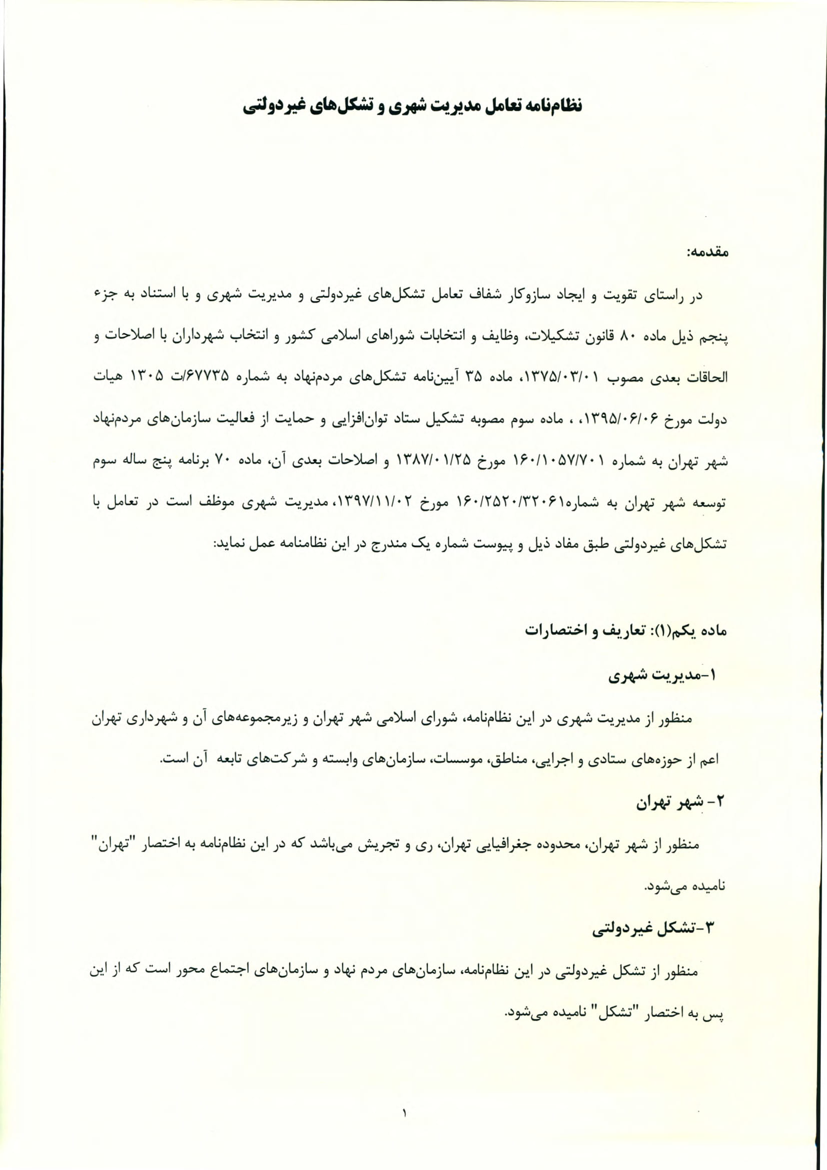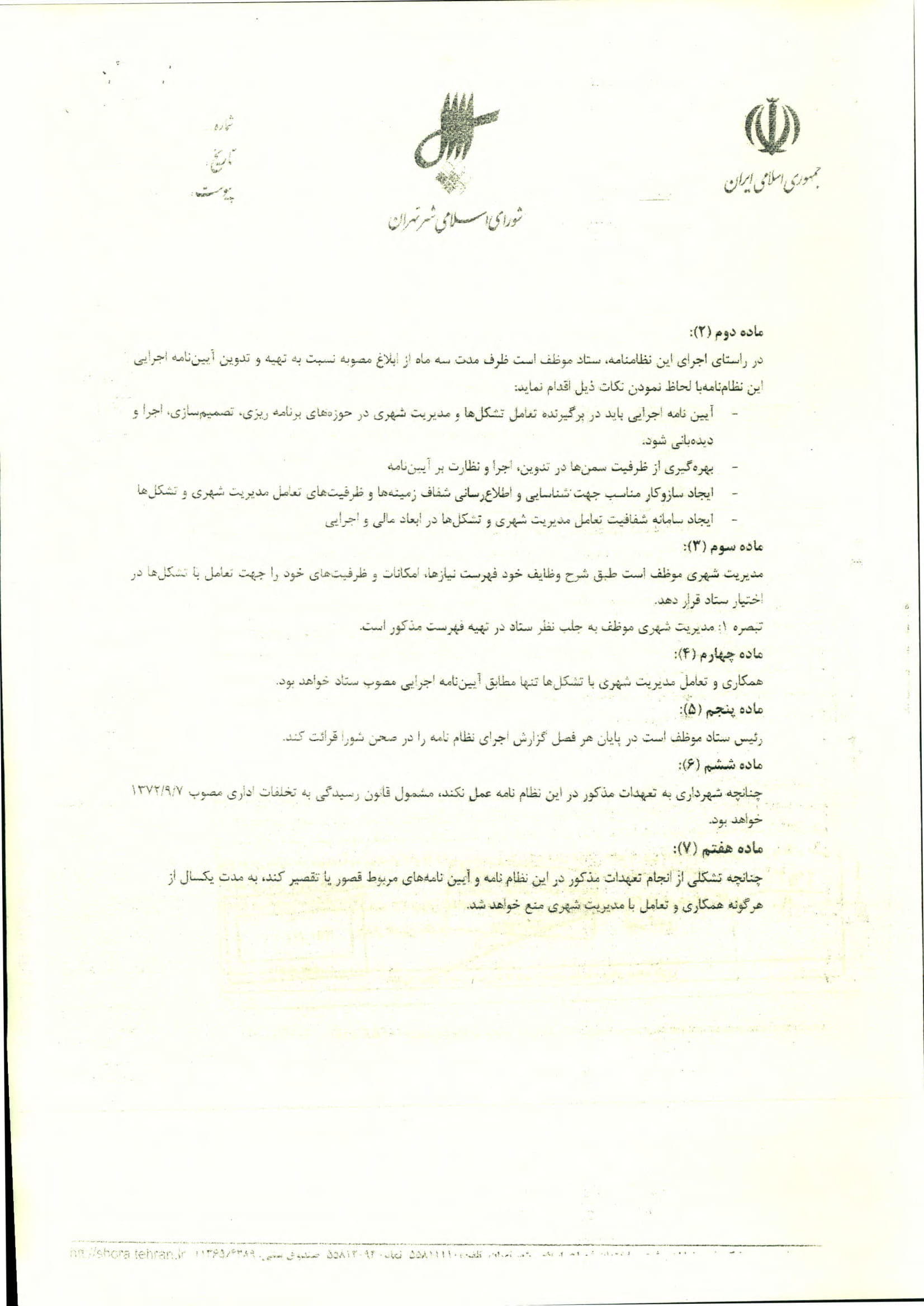 نظامنامه مشاركت و تعامل تشكلهاي غير دولتي و مديريت شهري