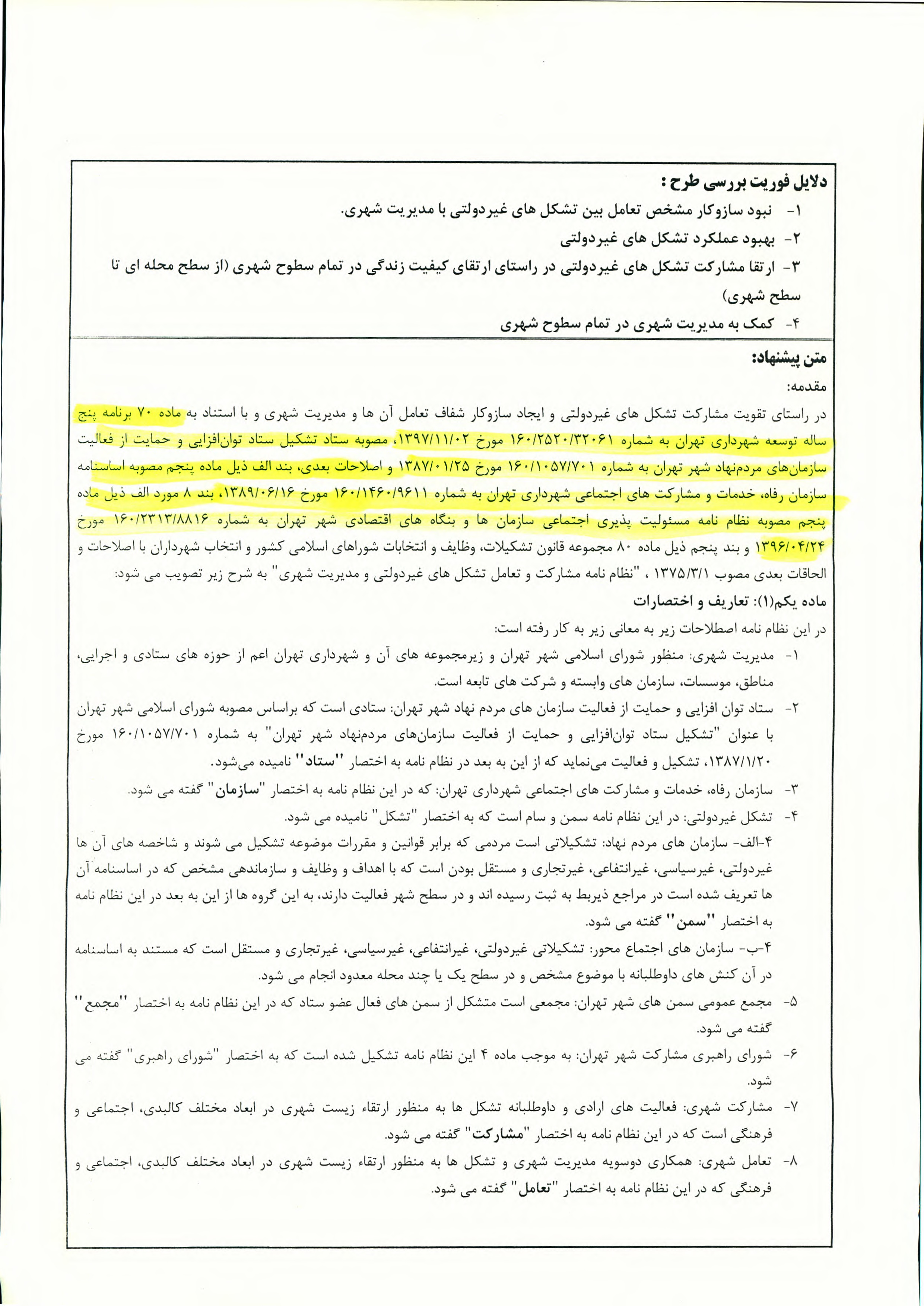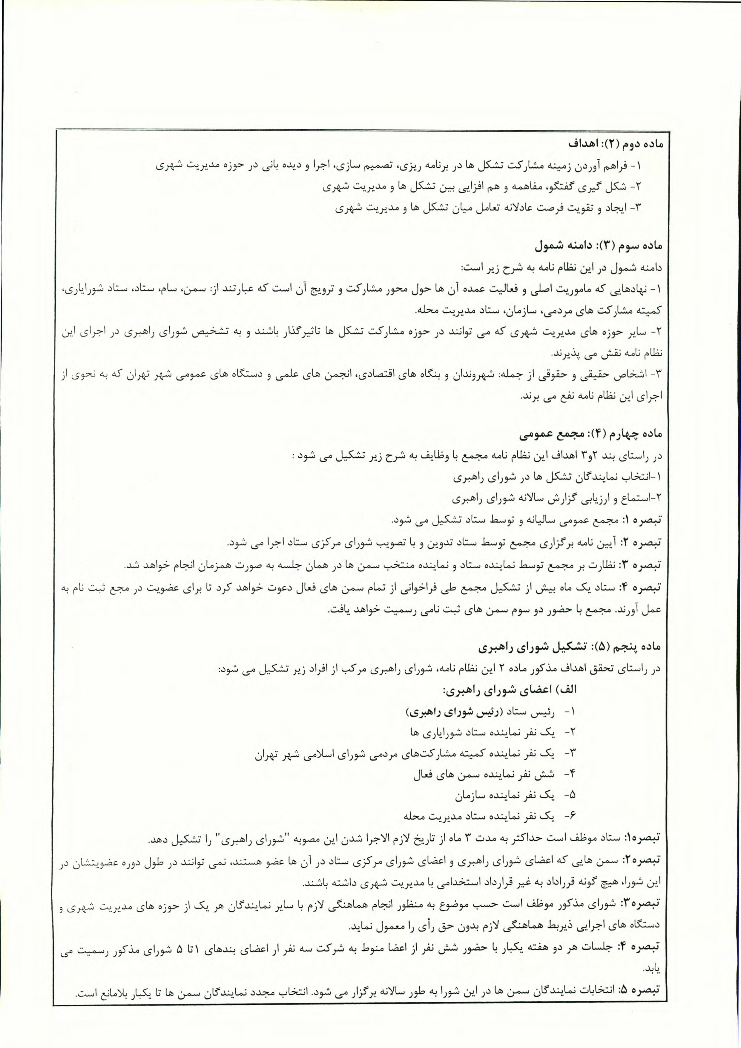 نظامنامه مشاركت و تعامل تشكلهاي غير دولتي و مديريت شهري