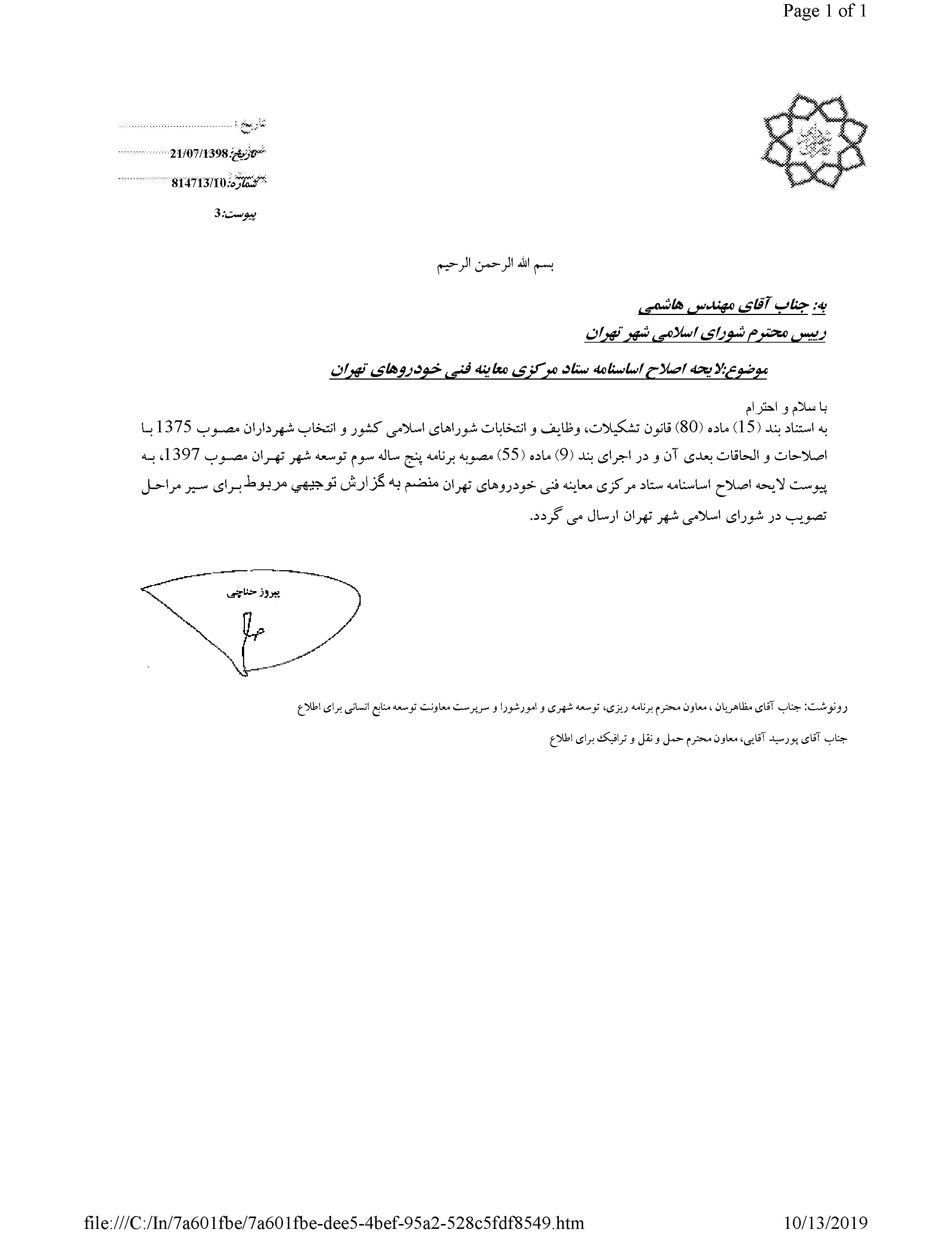 اصلاح اساسنامه ستاد مركزي معاينه فني خودروهاي تهران