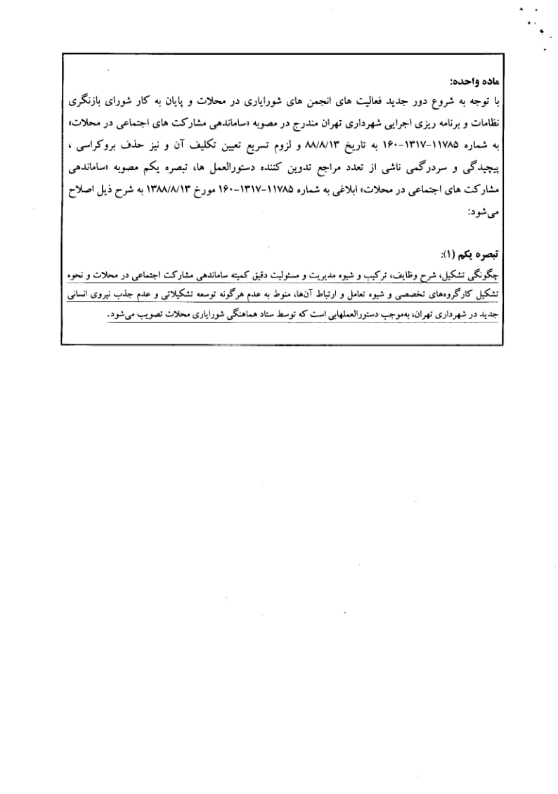 اصلاح تبصره يك مصوبه ساماندهي مشاركت‌هاي اجتماعي در محلات