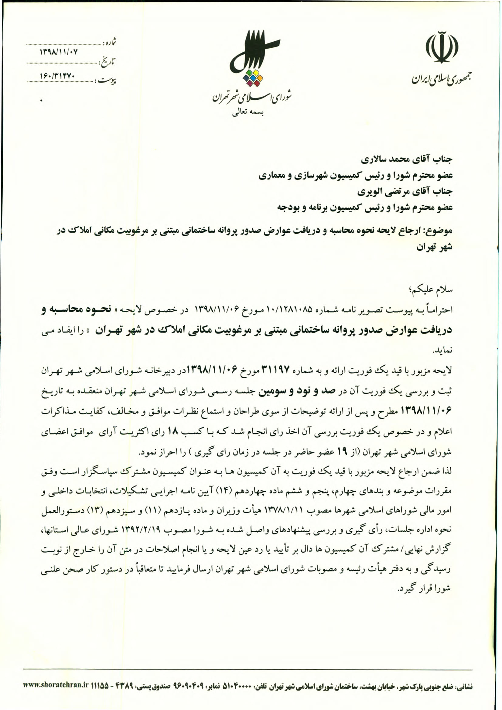 نحوه محاسبه و دريافت عوارض صدور پروانه ساختماني مبتني بر مرغوبيت مكاني املاك در شهر تهران