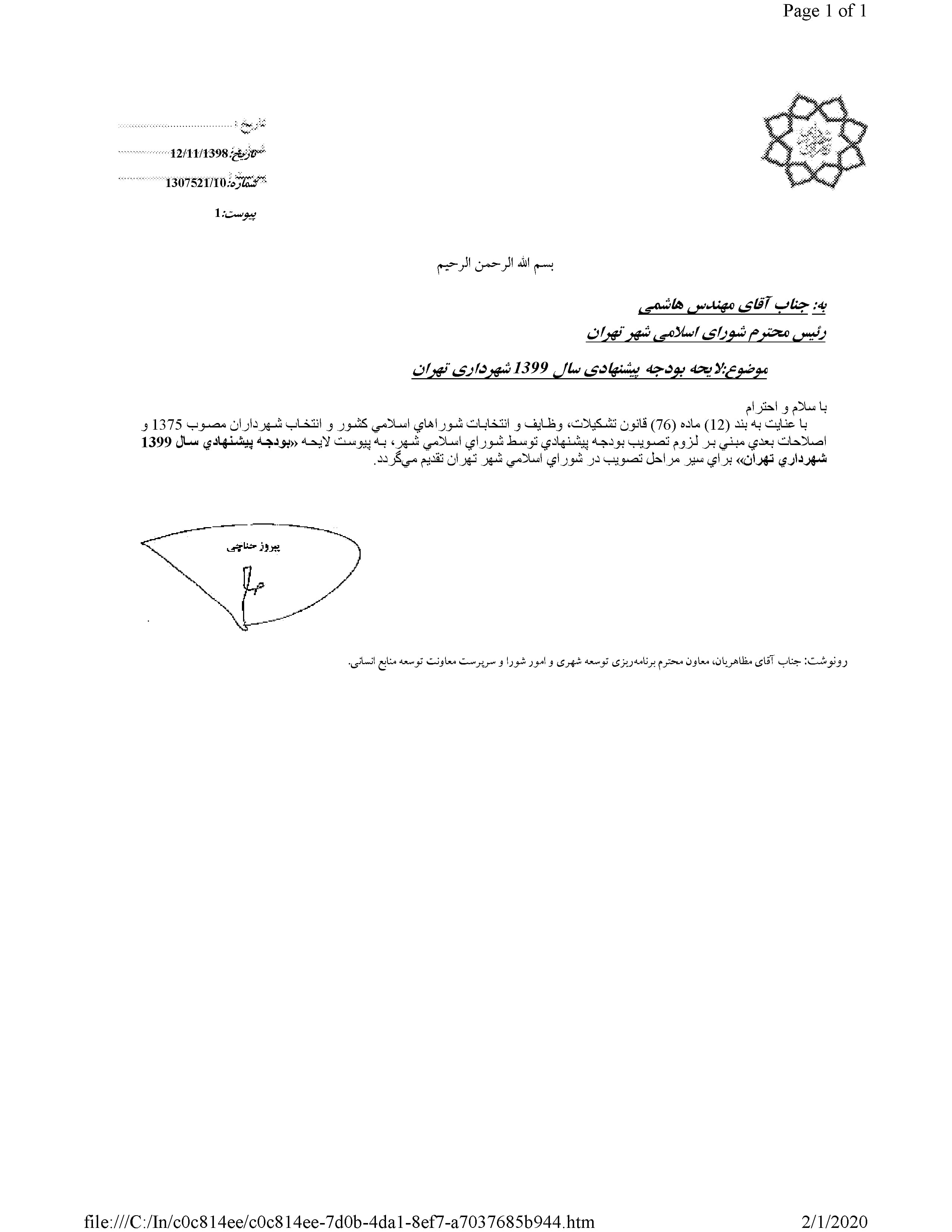 بودجه پيشنهادي سال 1399 شهرداري تهران