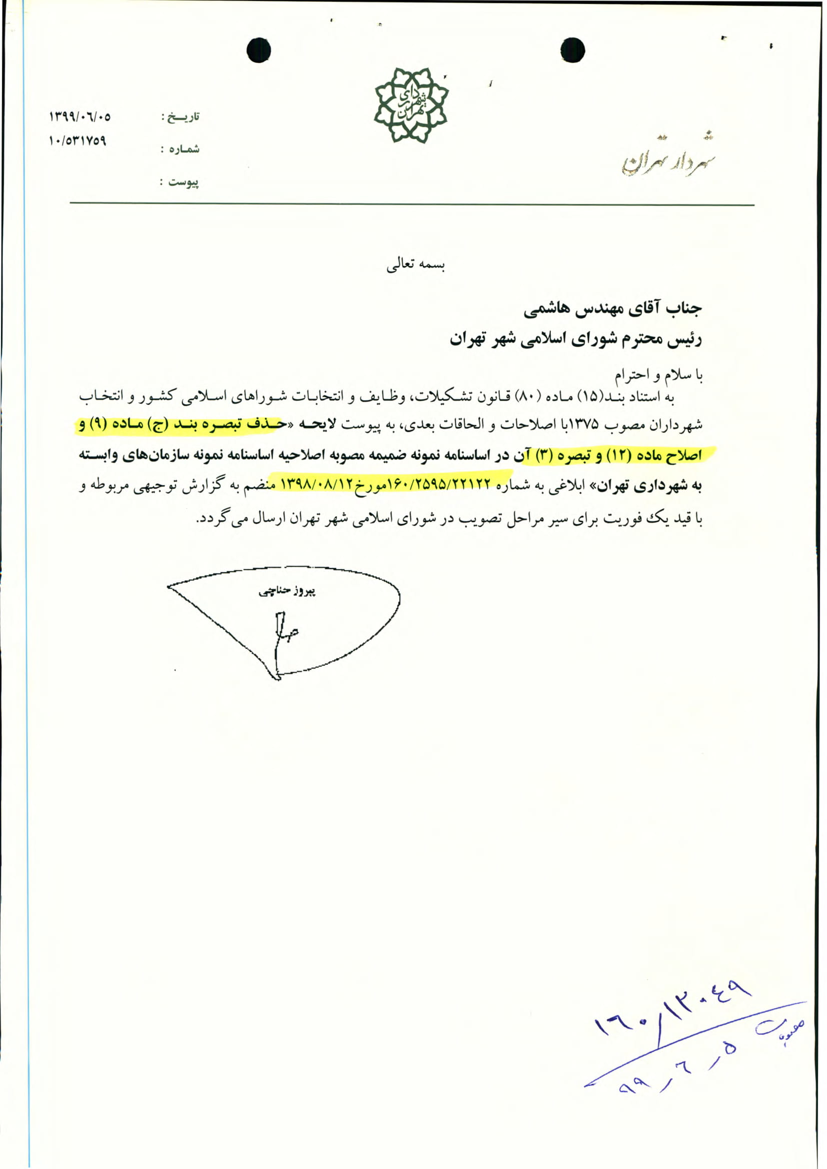 حذف تبصره بند (ج) ماده (9) و اصلاح ماده (12) و تبصره (3) آن در اساسنامه نمونه ضميمه مصوبه اصلاحيه اساسنامه و نمونه سازمانهاي وابسته به شهرداري تهران