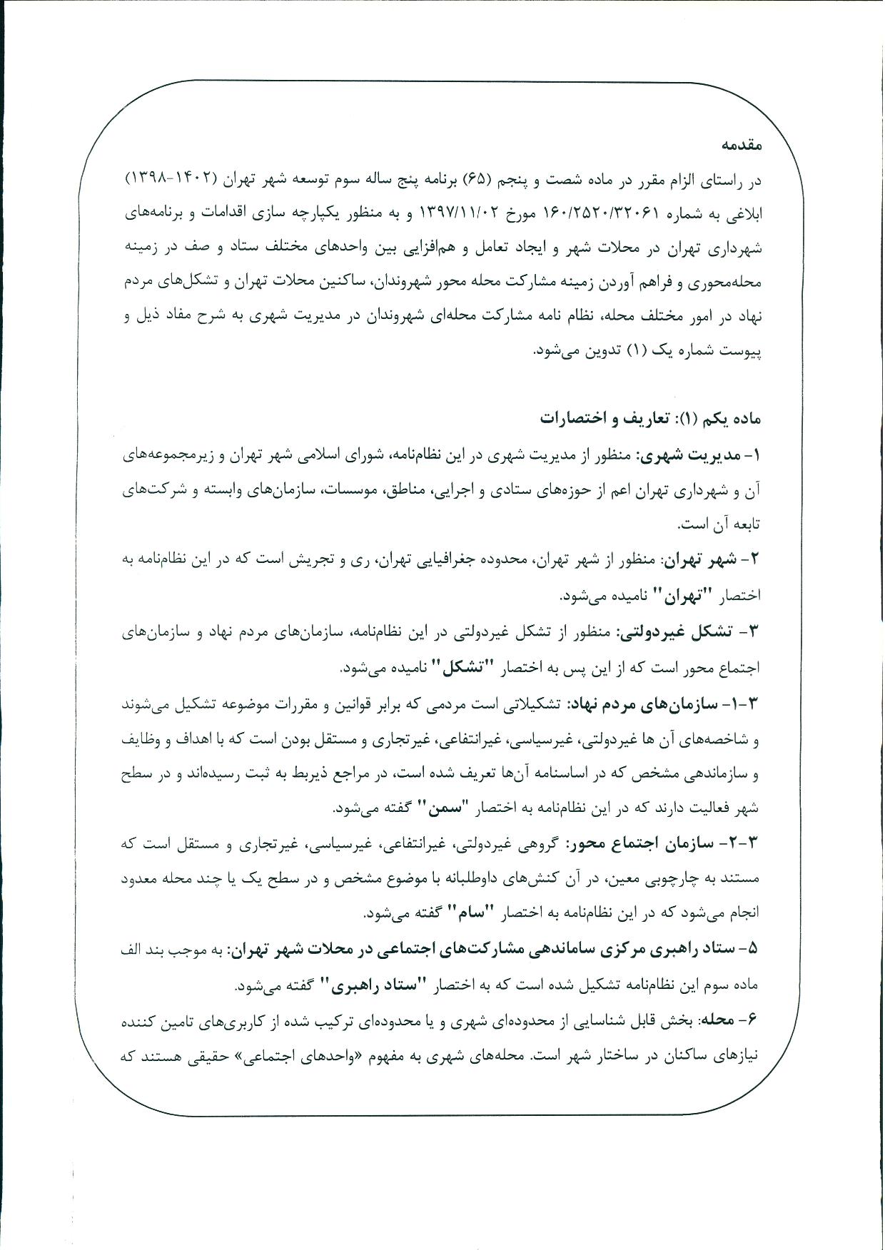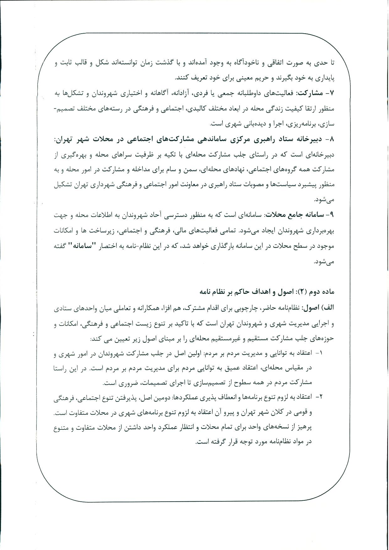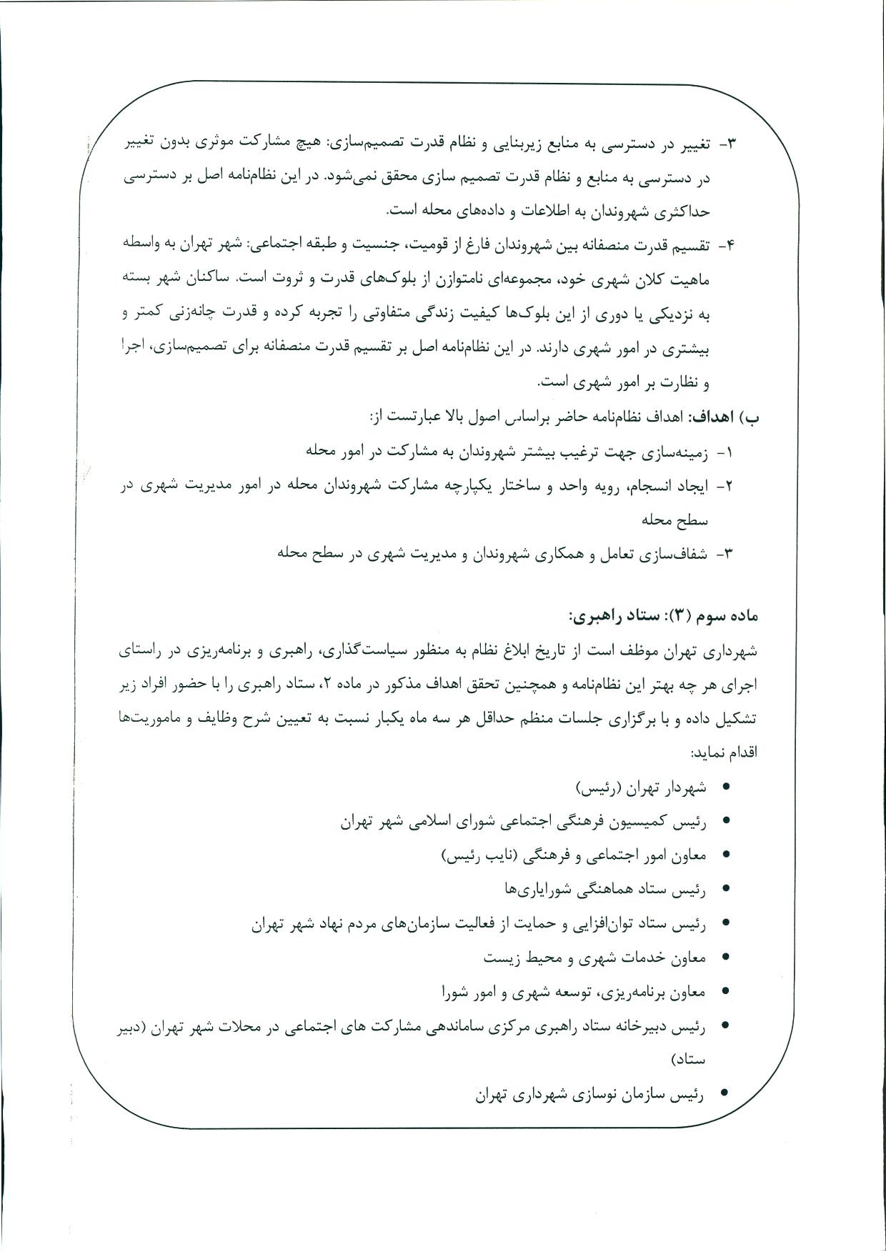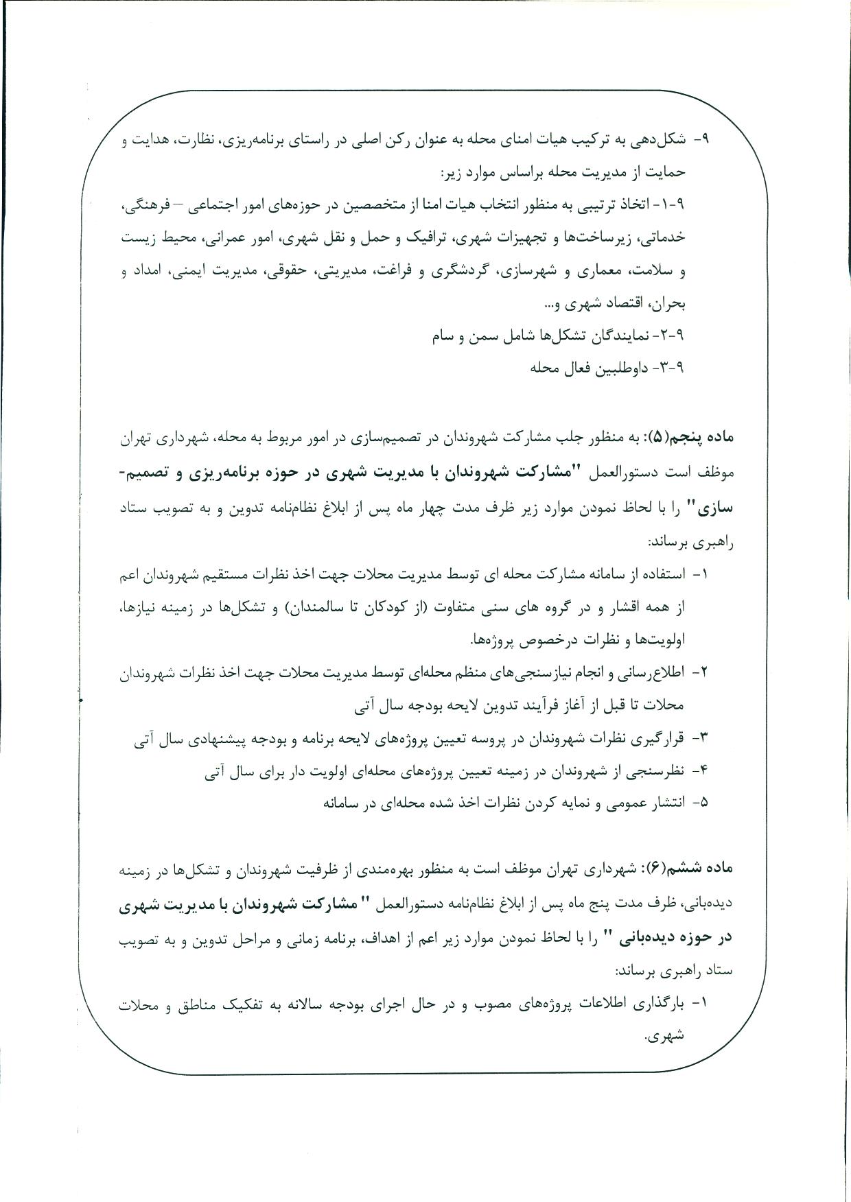نظامنامه مشاركت محلهاي شهروندان در مديريت شهري