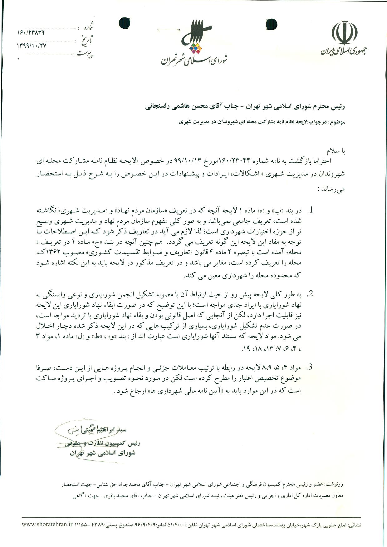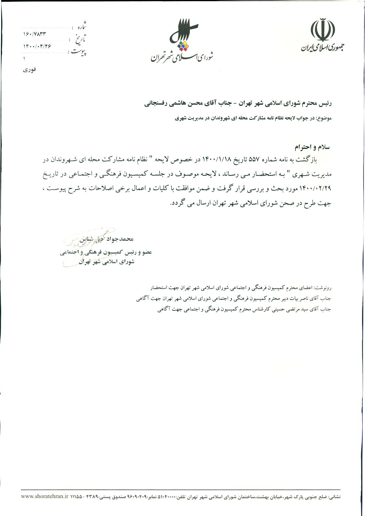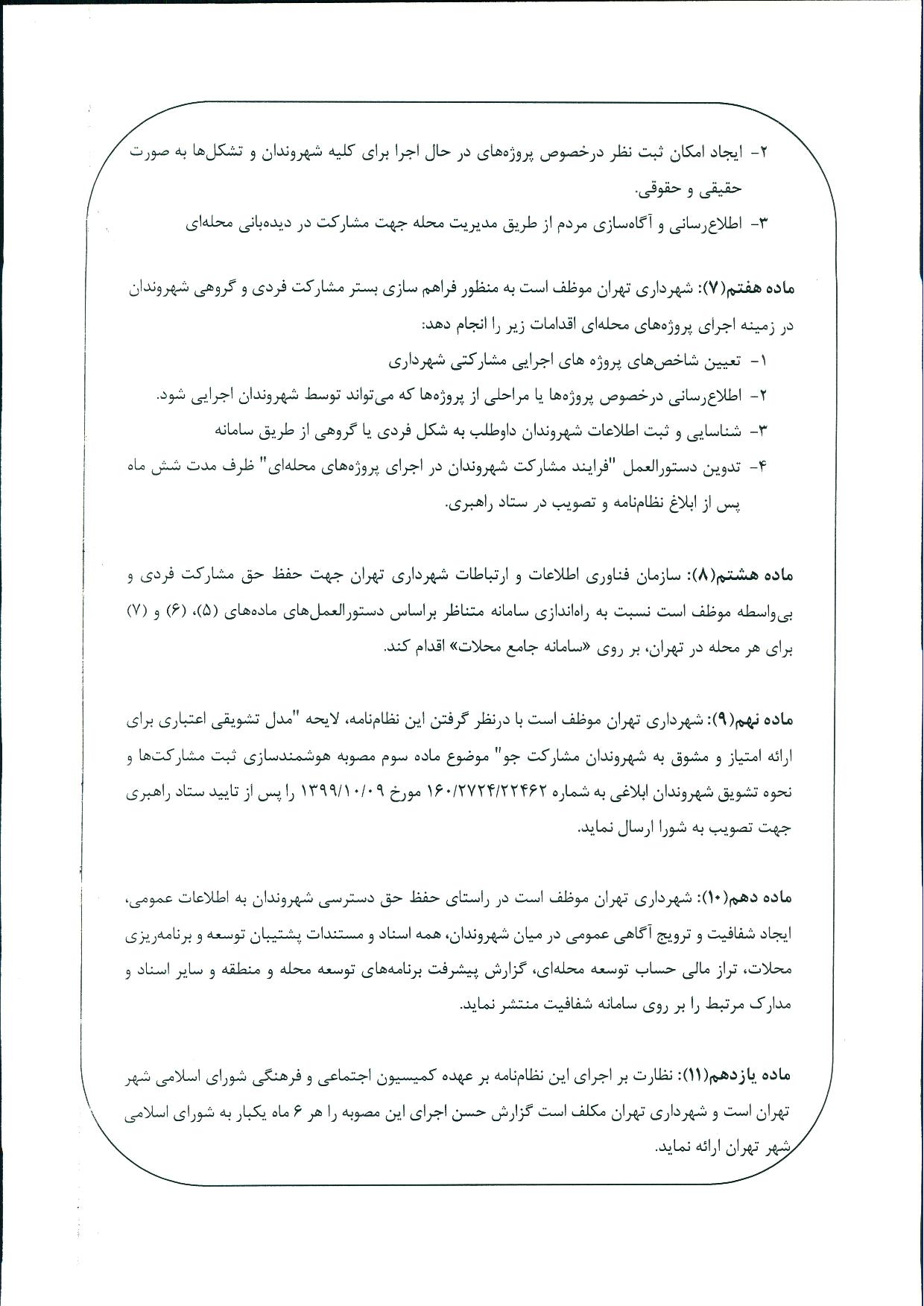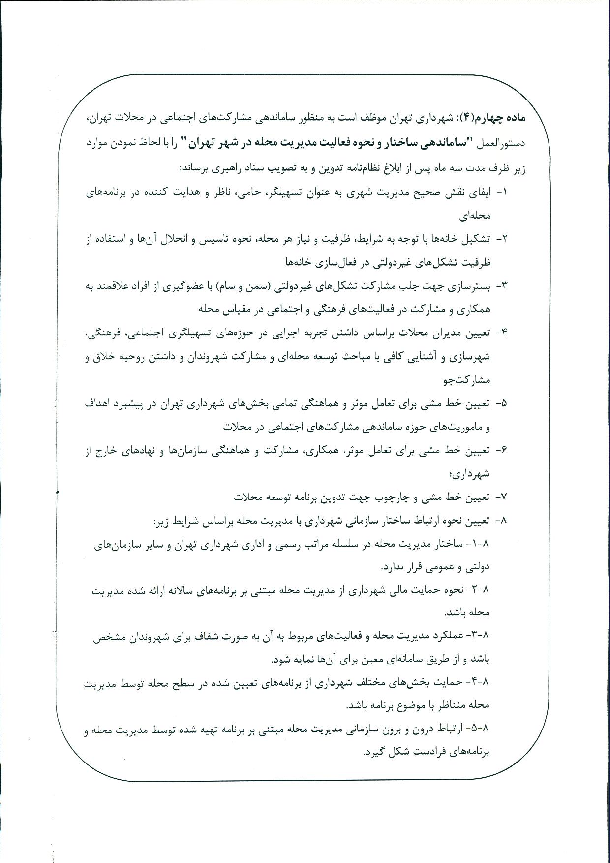 نظامنامه مشاركت محلهاي شهروندان در مديريت شهري
