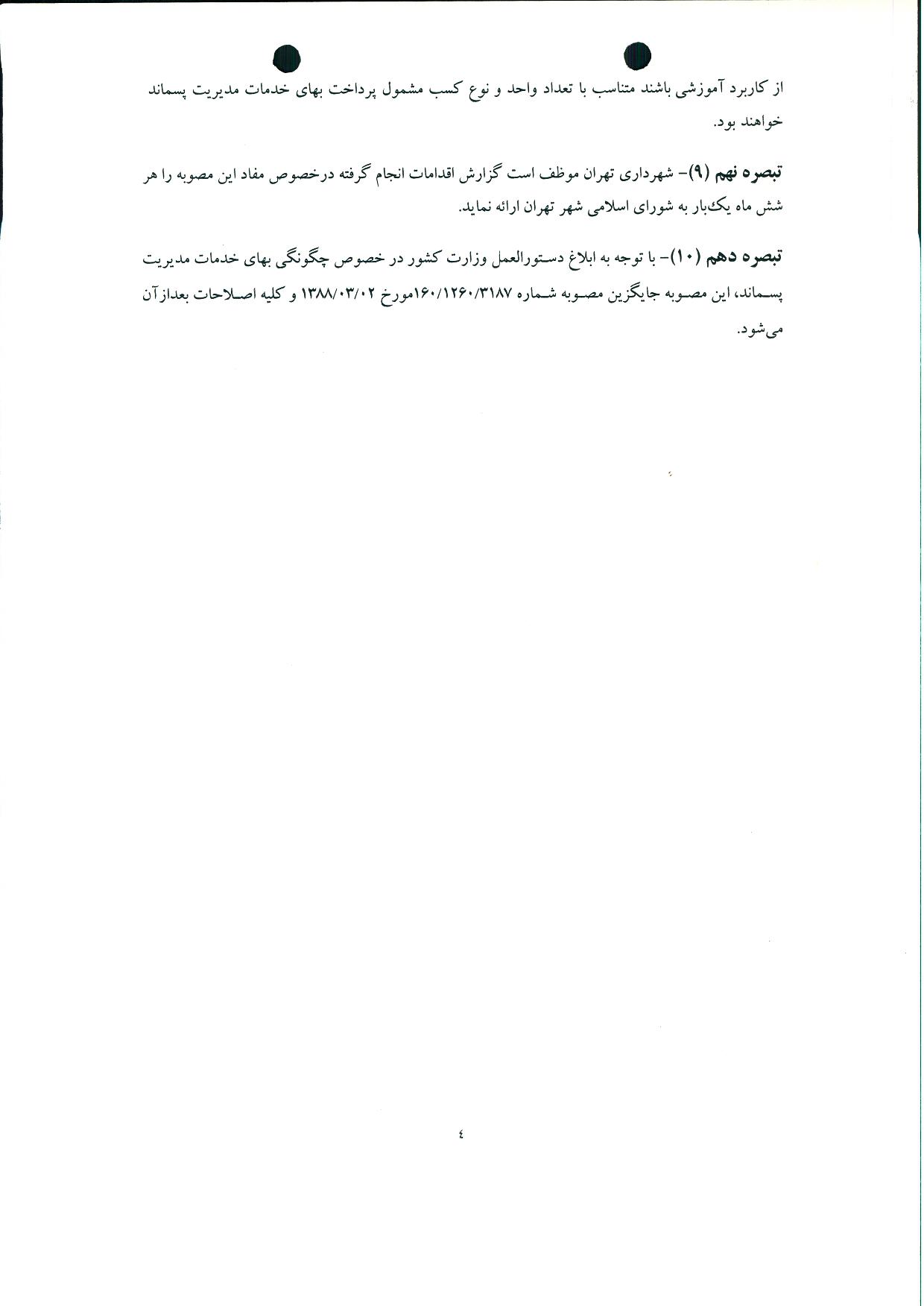 اصلاحيه مصوبه چگونگي محاسبه و اخذ بهاي خدمات مديريت پسماند (عادي) ابلاغي به شماره 160/1260/3187 مورخ 1388/03/02 با اصلاحات بعدي