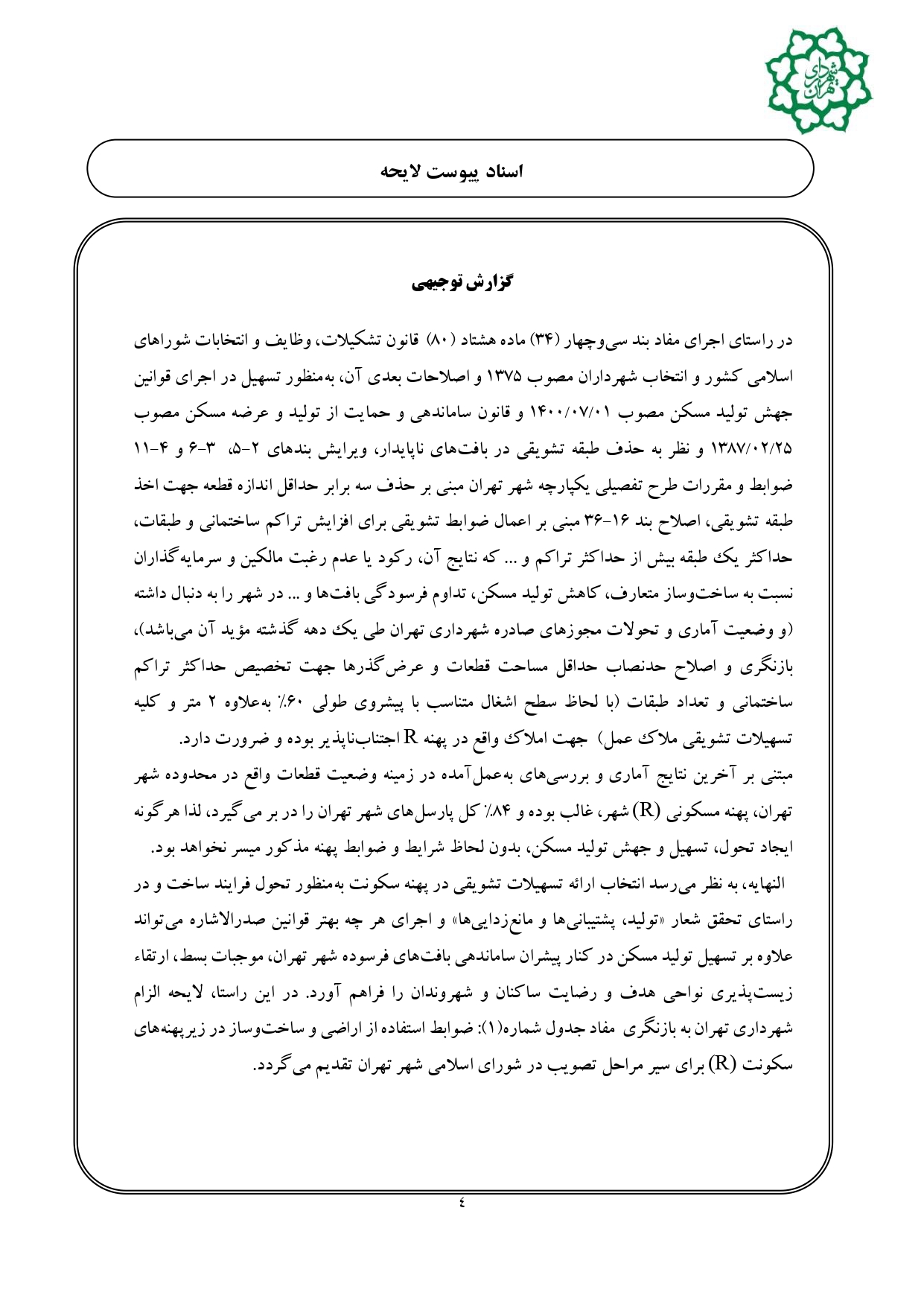 الزام شهرداري تهران به بازنگري مفاد جدول شماره (1): ضوابط استفاده از اراضي و ساختوساز در زيرپهنههاي سكونت (R)