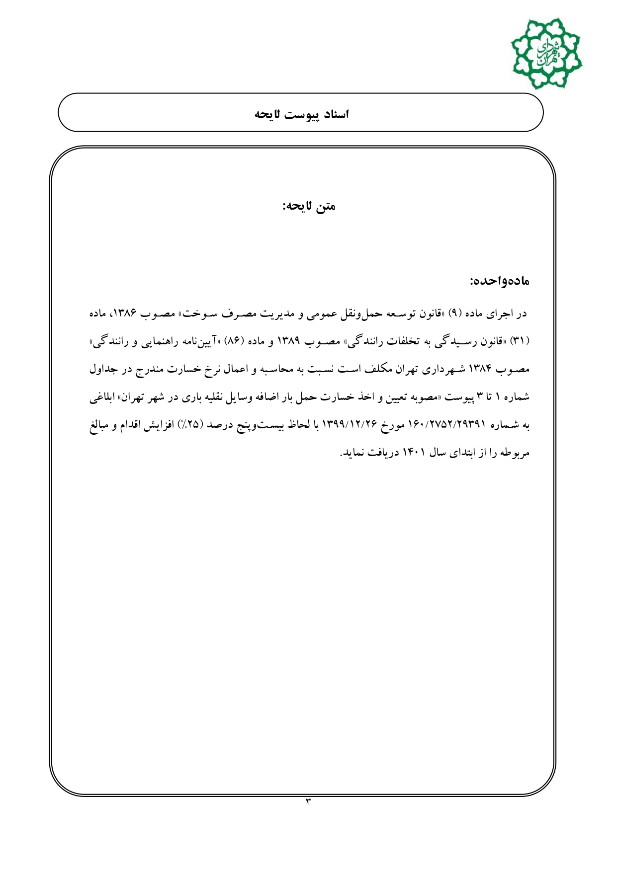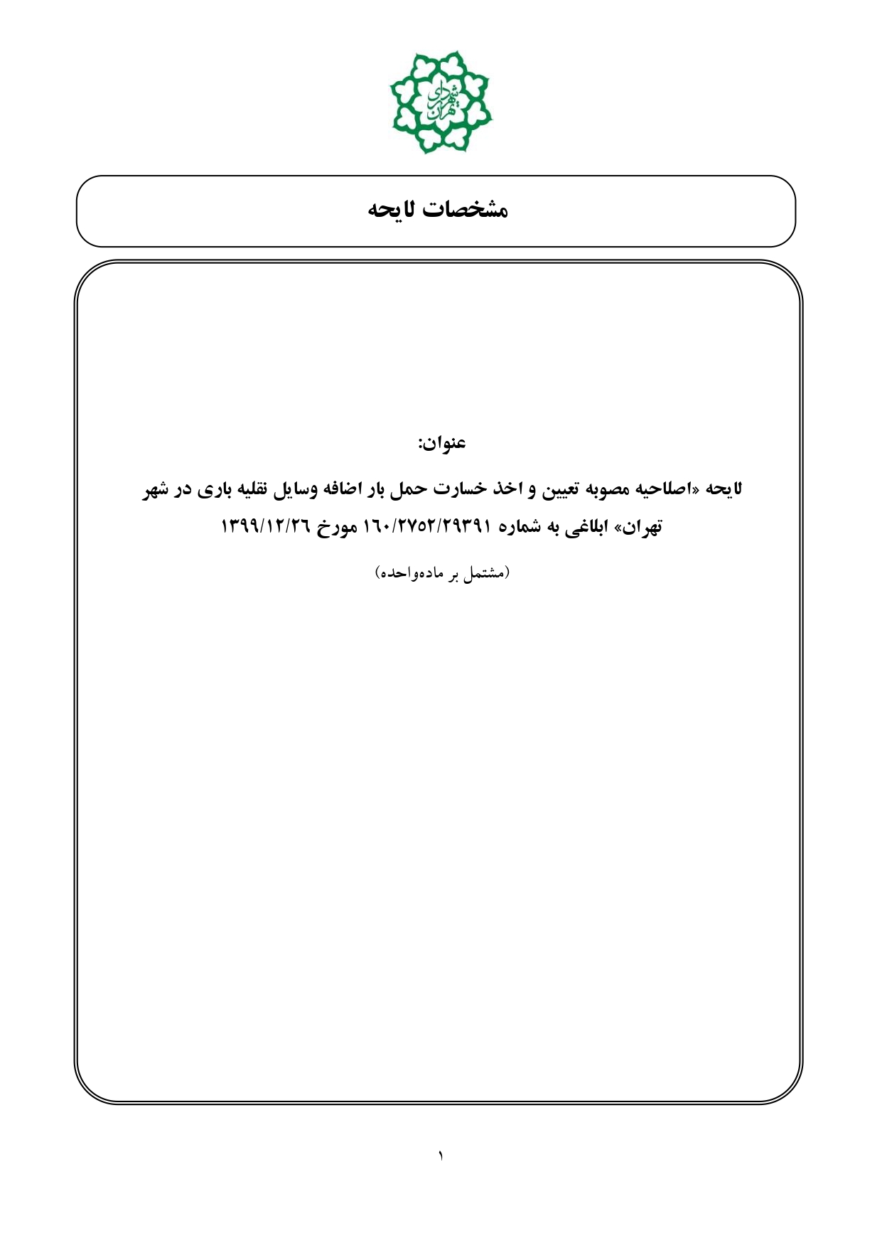 اصلاحيه تعيين و اخذ خسارت حمل بار اضافه وسايل نقليه باري در شهر تهران